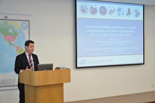 会议由北京大学医学部詹思延教授主持。演讲嘉宾是美国辉瑞制药有限公司全球流行病学高级总监Andrew Bate教授,他的报告题目是“国际安全监测的最新进展和未来机遇”。