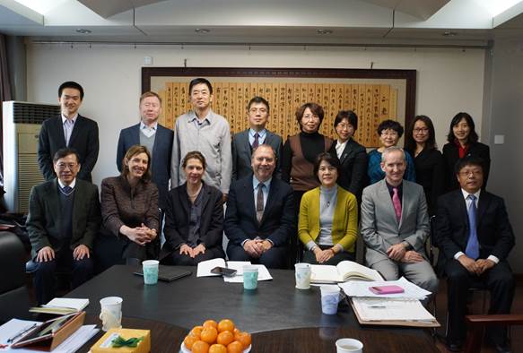 2013年12月12日下午,北京大学常务副校长、医学部常务副主任柯杨教授在公共卫生学院会见伦敦卫生与热带医学院(London School of Hygiene and Tropical Medicine,LSHTM) 院长Peter Piot教授以及世界卫生组织驻华代表施贺德博士等一行。公共卫生学院院长孟庆跃教授及部分学术骨干参加会见。