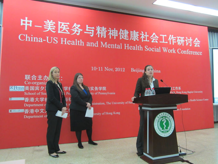 2012年11月10-11日,由北京大学公共卫生学院、美国宾夕法尼亚大学社会政策与实务学院、香港大学社会工作与社会行政系、香港中文大学社会工作系联合举办的首届“中-美医务与精神健康社会工作研讨会”在京召开。