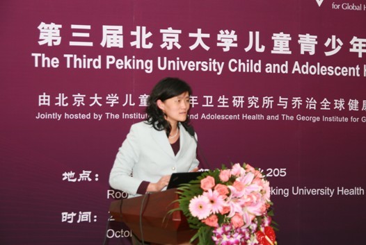 10月22日下午,由北京大学儿童青少年卫生研究所与乔治全球健康研究院共同主办的“第三届北京大学儿童青少年健康论坛”在北京大学医学部举行。来自卫生部疾控局精神卫生处、乔治全球健康研究院、北京大学公共卫生学院、北京大学儿童青少年卫生研究所、北京大学医学部临床研究所、北京市疾病预防控制中心及北京市各区县疾病预防控制中心、中小学生保健所、校医等100多位专家、师生参加了本次论坛。