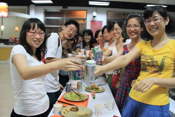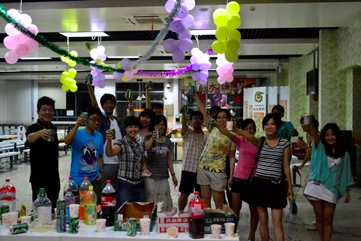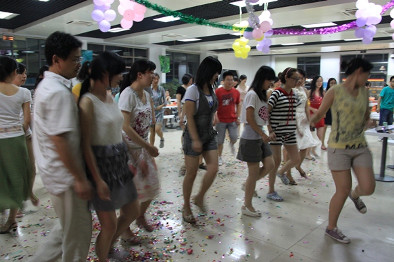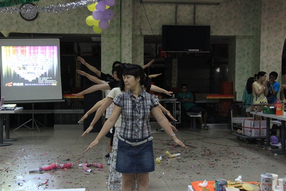 2011年6月28日晚,在全体研会成员和卫管同学的精心布置下,舞会的现场显得异常美丽和动感。研会还为毕业生们准备了丰盛的自助餐和酒水。7点半,随着很多毕业生的到场,开始播放毕业生视频并给每个到场毕业生发放了毕业生纪念册。大家在欢快轻松的音乐下彼此交谈、举杯。8点,主持人袁灿和徐艺翀宣布了舞会正式开始,礼炮声响,顿时满空彩带飞扬。两位主持人对大家近几年的生活进行了简要介绍,从入学时的迷茫,到做课题、社会实践的辛苦,再到找工作的压力,勾起了在场所有人对生活点点滴滴的回忆,有些师姐竟然潸然泪下。接着播放了记录毕业生们研究生生活点滴的视频后,舞会进入了第一个高潮“32步”。“32步”虽然很多人不是很熟悉,但是在陶斯宇同学的带领下,无论是稳重的毕业生还是活泼激情的在校生很快都能跟着节奏蹦跶起来,经过一两支舞曲后,很多师姐已经放下了平时科研的沉重,开始翩翩起舞。