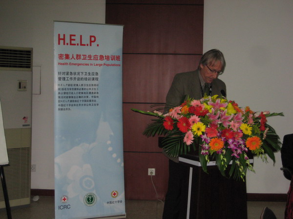 2010年10月18日在北京大学医学部举办由红十字国际委员会、北京大学公共卫生学院、中国红十字会总会合办的“密集人群卫生应急培训班”正式拉开帷幕,这届培训班的主旨之一是如何在灾害局势和突发状况下满足人们在安全用水、疾病防控和心理支持等多方面的需求,加强突发状况下的公共卫生工作。