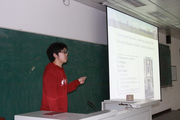 为了让公卫学院更多的学生拓宽视野,学院特别安排此次出访的学生组织了本次交流会,与同学们分享他们的所见、所闻、所感。交流会上实践团成员依次将他们五所著名大学公共卫生学院的所见所闻详细地给大家一一做了介绍,为在场同学奉献了一场教育与实践结合、学术与文化并存的视听盛宴。尤其介绍了各著名学校对国际生项目的申请细节,对于有出国打算的同学们来说,可谓是第一手资料。最后王培玉教授还对本科生选择出国、选择学校时应考虑的综合因素做了详细补充,并指出除了以上这些知名大学外,国外还有很多大学的公共卫生专业都非常有实力,希望同学们在选择学校时应更多考虑一些环境、专业、当地经济消费等实际因素,勉励大家多接触国际化的预防医学教育,让自己的学业不断进步。