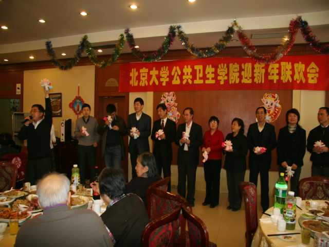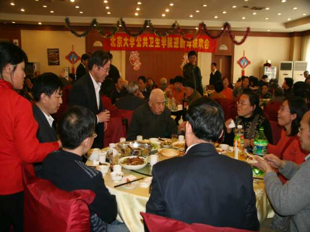 岁末2008年12月30日中午鸿运楼烤鸭店里热闹非凡,公共卫生学院大家庭的男女老少历史上第一次大聚餐!“(一)要感谢改革开放30年的伟大成就,才使得我院今天有能力和机会来举办这样一个活动。(二)要感谢老天爷在数九寒天给了我们一个风和日暖的好天气,使许多老同志们也能方便参加聚会 。”徐善东副院长精辟的开场白。