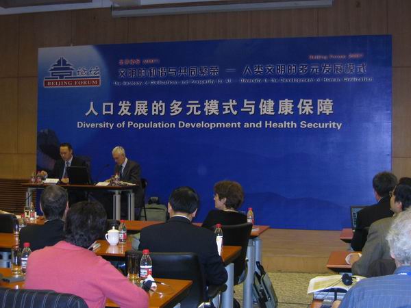 北京论坛(2007)11月2日-4日在北京隆重召开,今年的主题是文明的和谐与共同繁荣——人类文明的多元发展模式。由北京大学公共卫生学院与人口所联合组织人口与公共卫生分论坛同时举办,主题是:人口发展的多元模式和健康保障。主要讨论在人口转变、健康转变和社会转型过程中的人口健康保障和公共政策问题,针对不同的人口发展态势和不同需求的重点人群提出关键问题和政策建议。