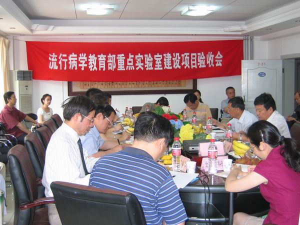 2007年6月15日教育部科技司组织专家在北京大学对“流行病学教育部重点实验室”建设项目进行验收。来自中国协和医科大学基础研究所沈岩院士、中国疾病控制中心流行病与传染病研究所所长徐建国教授、北京市卫生局副局长梁万年教授、中国军事医学科学院所长曹务春教授、首都医科大学公共学院院长王嵬教授、山东大学公共卫生学院院长赵仲堂教授、安徽医科大学公共卫生学院院长叶冬青教授组成的专家组进行验收工作,组长由沈岩院士担任。北京大学常务副校长柯杨教授、医学部副主任方伟岗教授、教育部科技司李渝红处长、医学部科研处沈如群处长、基础医学院周春燕副院长,北京大学科研部及医学部学科建设办公室领导、公共卫生学院各系主任参加验收会。