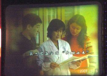 (图为颁奖会现场屏幕播放刘民教授指导研究生的镜头)