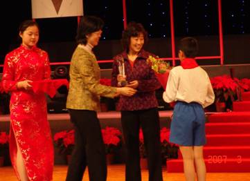 (图为全国妇联宣传部副部长张小媛亲自为刘民同志颁奖)