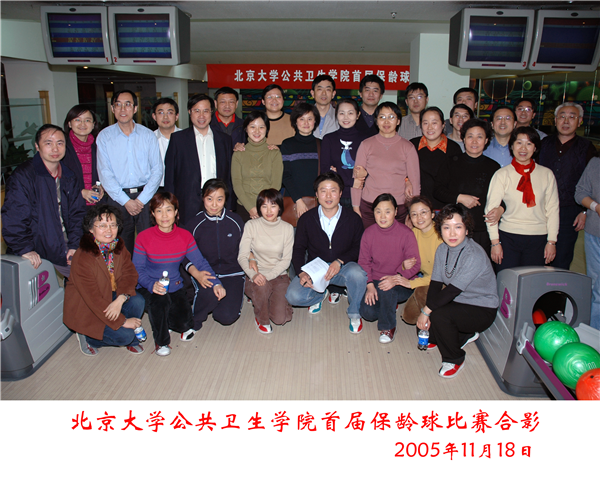 2005年11月18日,公共卫生学院首届保龄球比赛在科苑宾馆的保龄球馆进行。共有42名教职员工参与了比赛,其中女职工23人,男职工19人。在首先进行的个人赛中,按照成绩排名,男女各8人进入复赛,按照比赛成绩依次为: