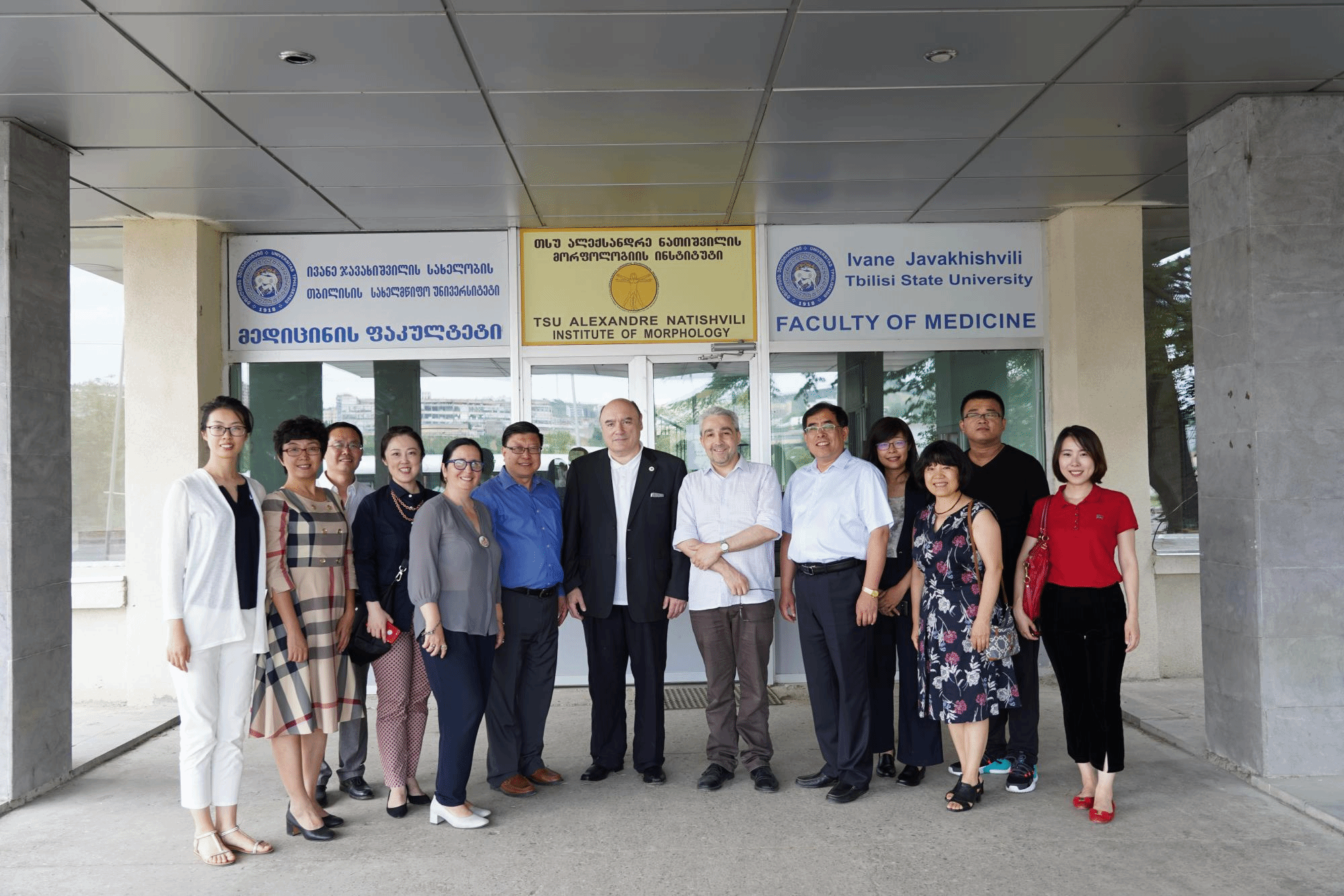 出访格鲁吉亚期间,北京大学代表团访问了第比利斯国立大学医学院,双方就基地建设、项目管理、学生培养、安全保障等方面达成共识,就下一步双方合作达成意向,北京大学的老师们也纷纷对双方合作的实施和发展提出宝贵意见和想法。代表团还参观了第比利斯中心医院,拜会第比利斯中心医院院长George Lobzhanidze,通过实地考察,了解当地医疗卫生体系发展现状,针对具体问题开展交流。