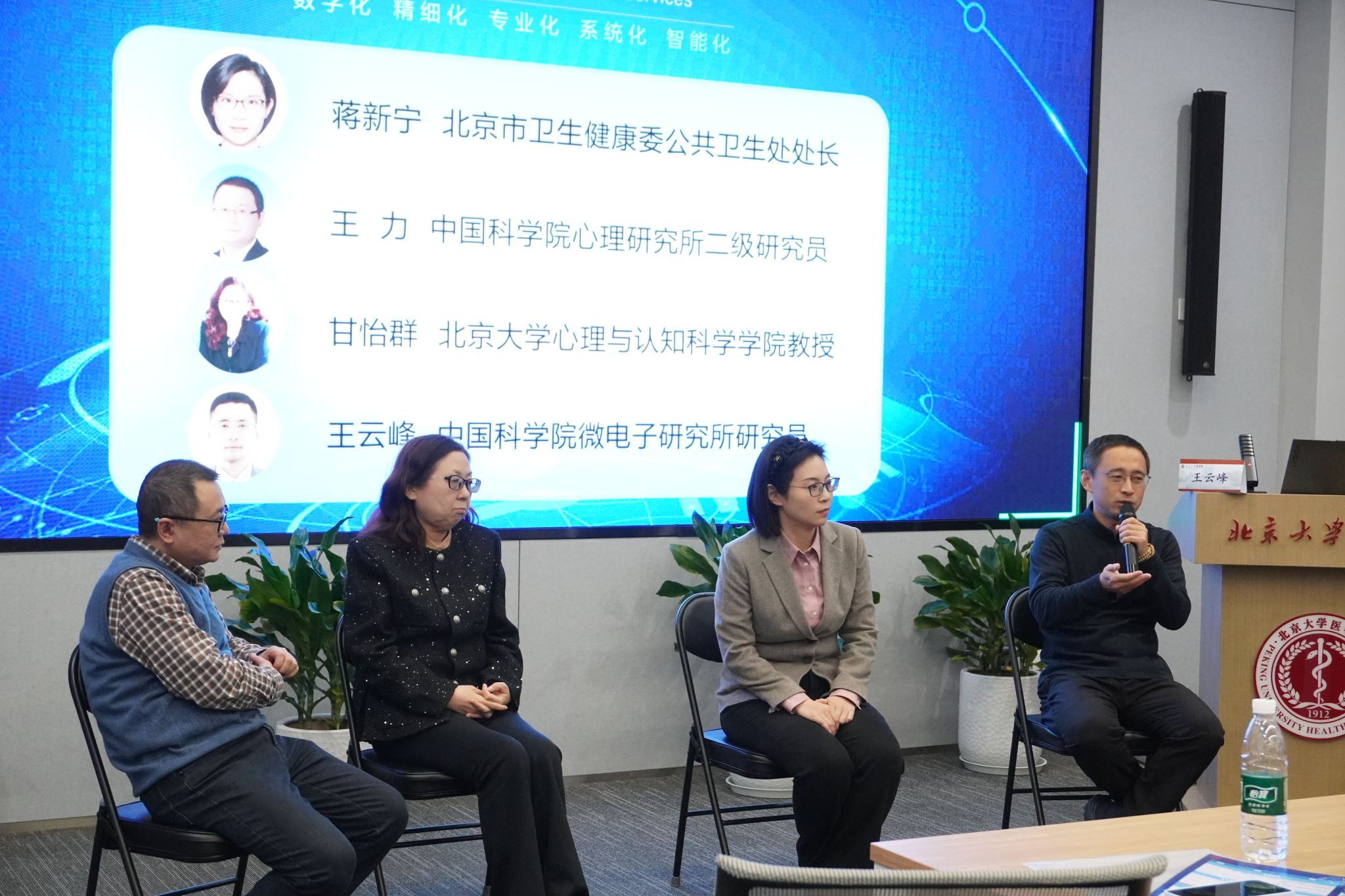 会议最后,在圆桌讨论环节,北京市卫生健康委公共卫生处处长蒋新宁、中国科学院心理研究所王力研究员、北京大学甘怡群教授与中科院微电子所王云峰研究员,围绕“打破学科壁垒、实现深度融合”展开了热烈讨论。
