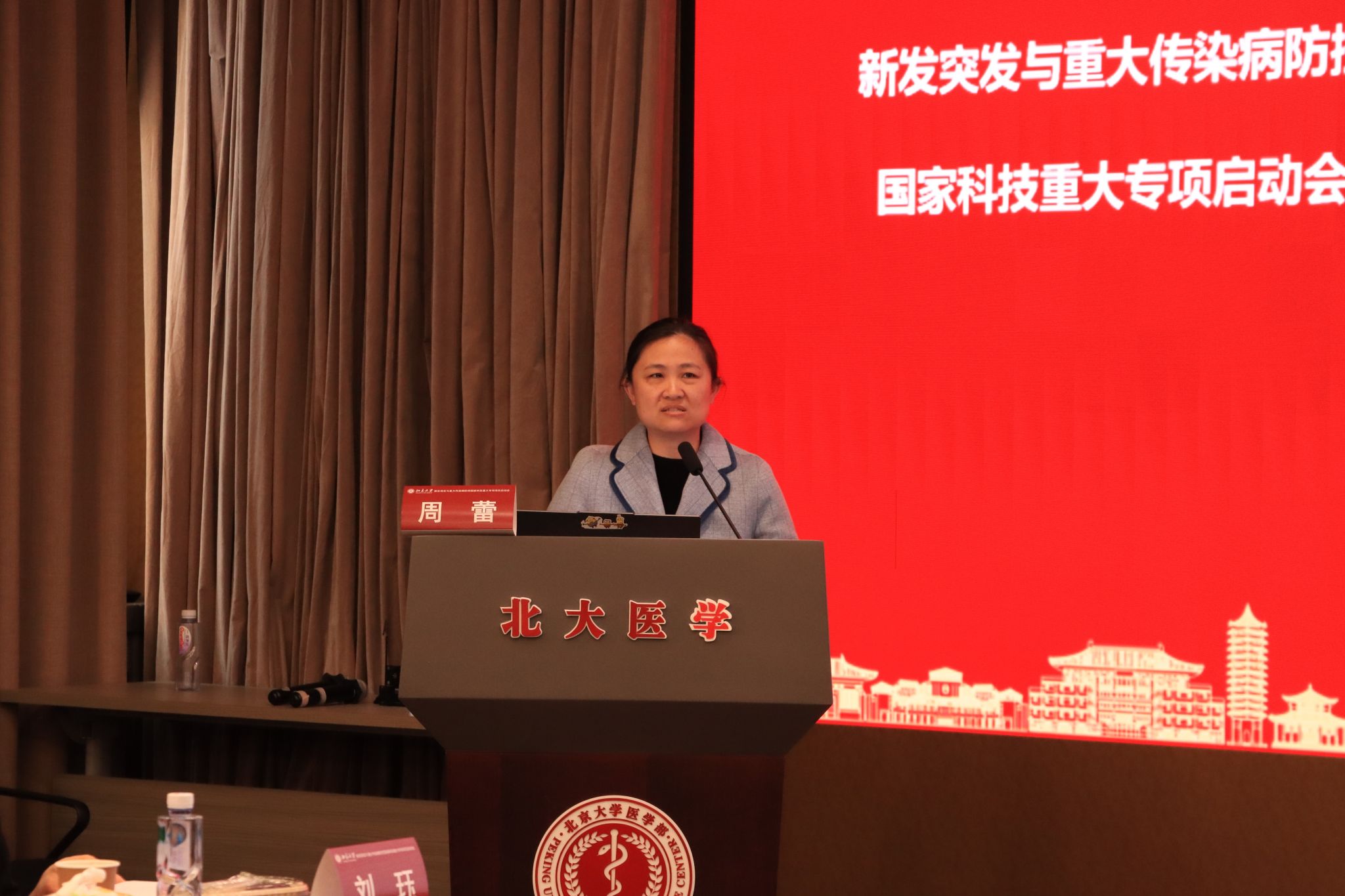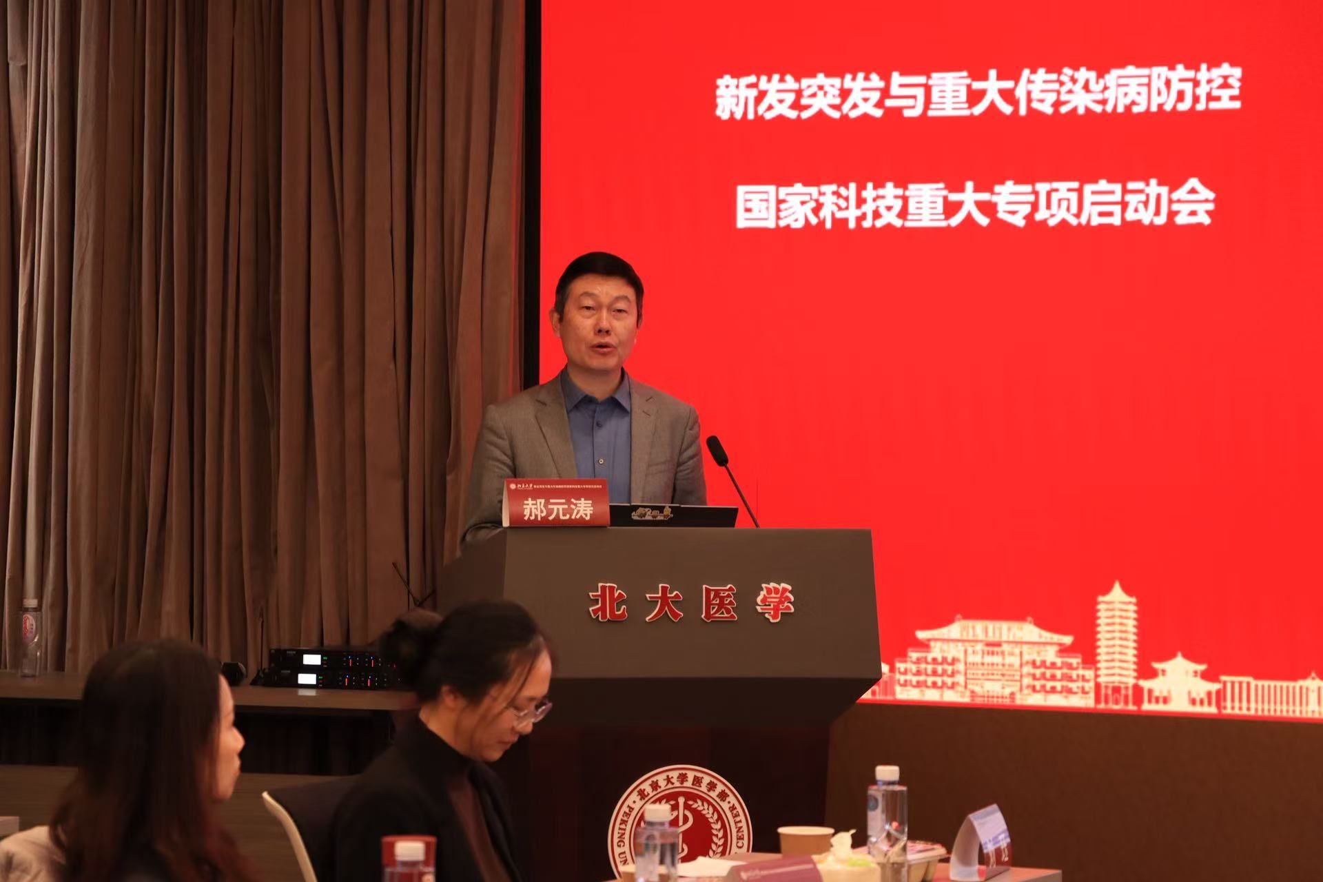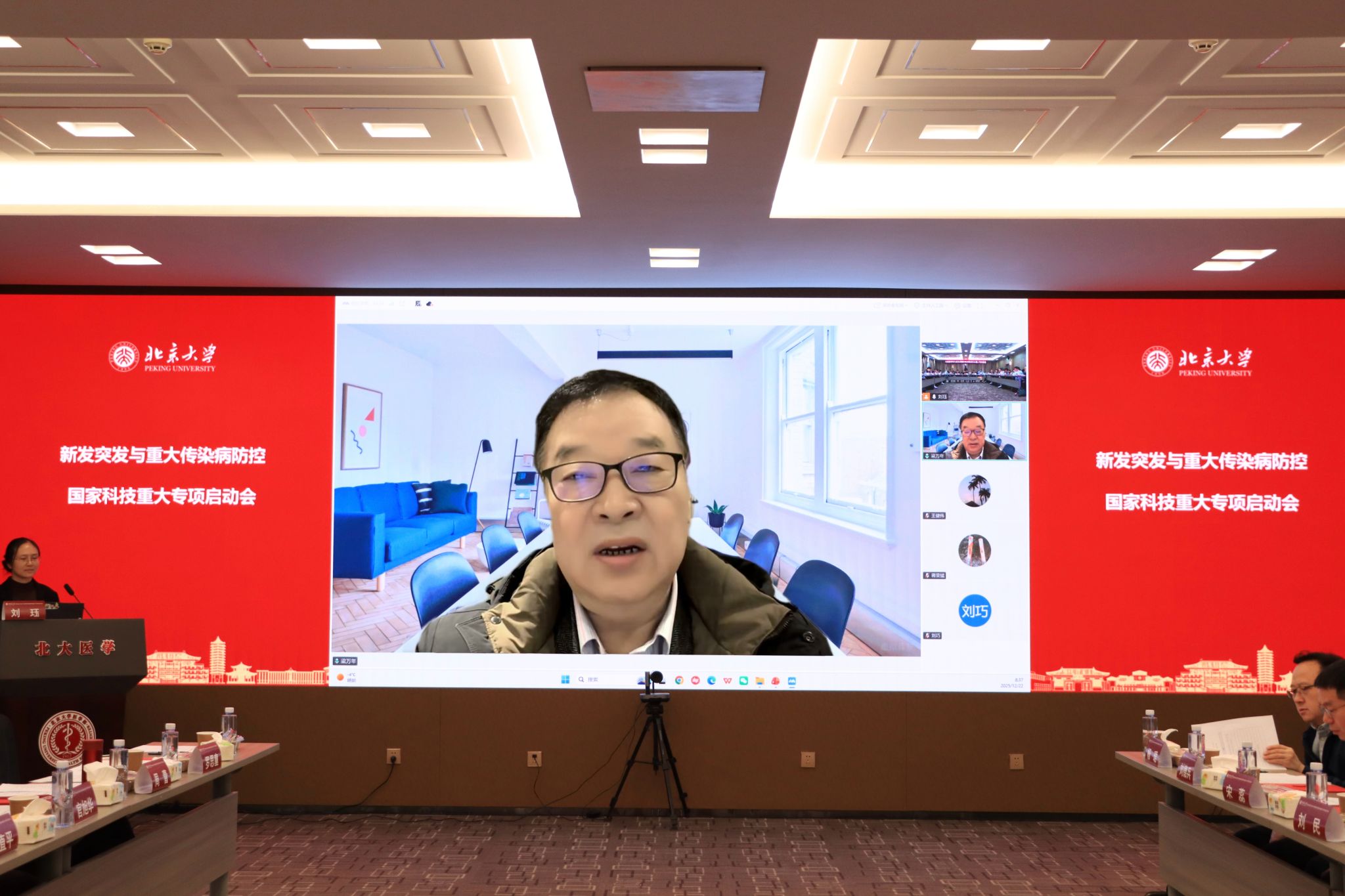 国家卫生健康委医药卫生科技发展研究中心主任顾金辉,国家疾控局传染病防控司司长雷正龙,国家疾控局监测预警司司长焦振泉,新发突发与重大传染病防控国家科技重大专项副总师、中国疾病预防控制中心主任、中国工程院院士王健伟,新发突发与重大传染病防控国家科技重大专项副总师、南方科技大学全科医学院院长梁万年莅临指导。项目依托单位北京大学常务副校长、医学部主任、中国工程院院士乔杰,北京大学医学部科研处处长王坚成,北京大学医学部科研处副处长邓锐、北京大学医学部科研处重大项目办公室主任李娜等出席会议。