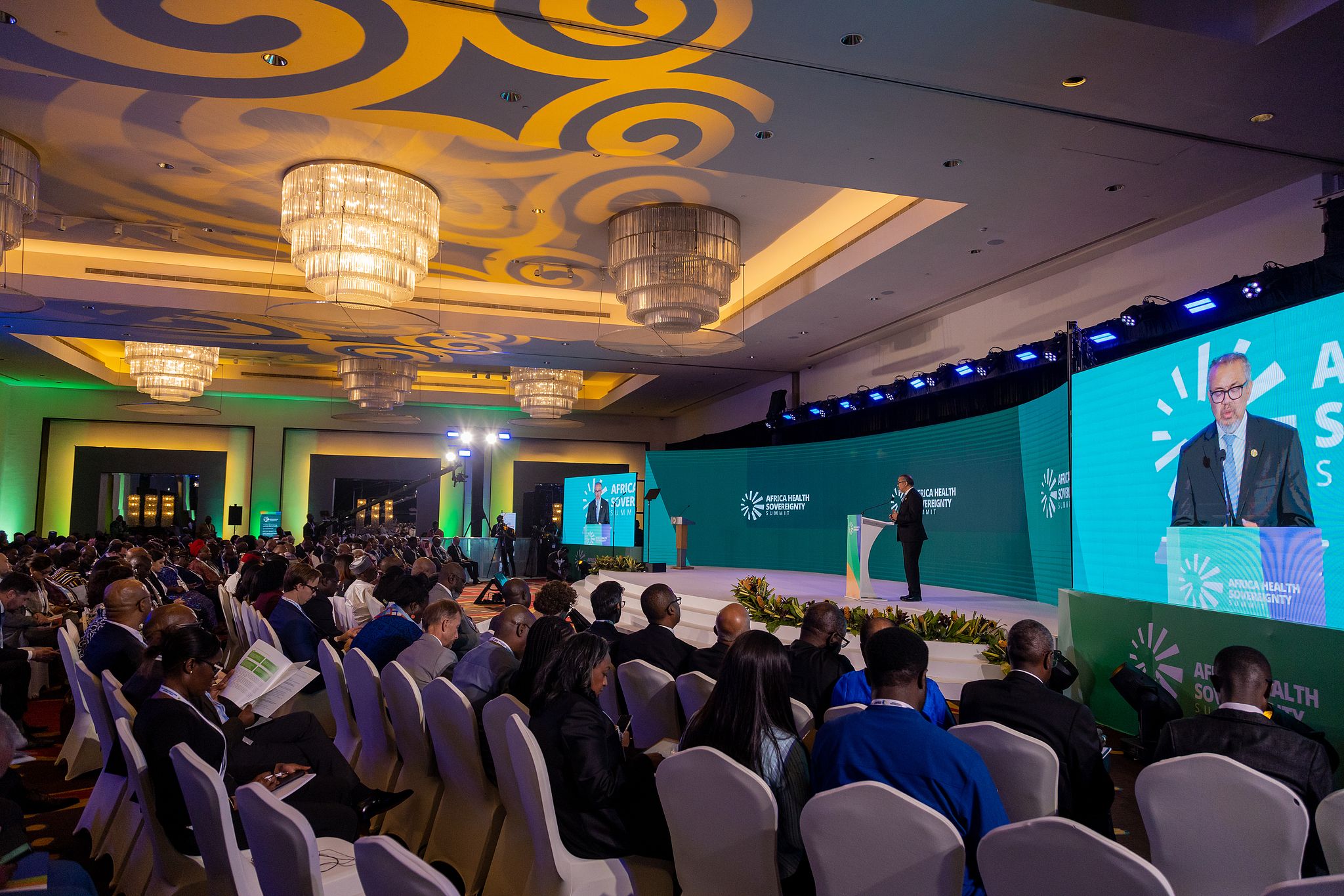 世界卫生组织总干事谭德塞在首届非洲卫生主权峰会上发表讲话