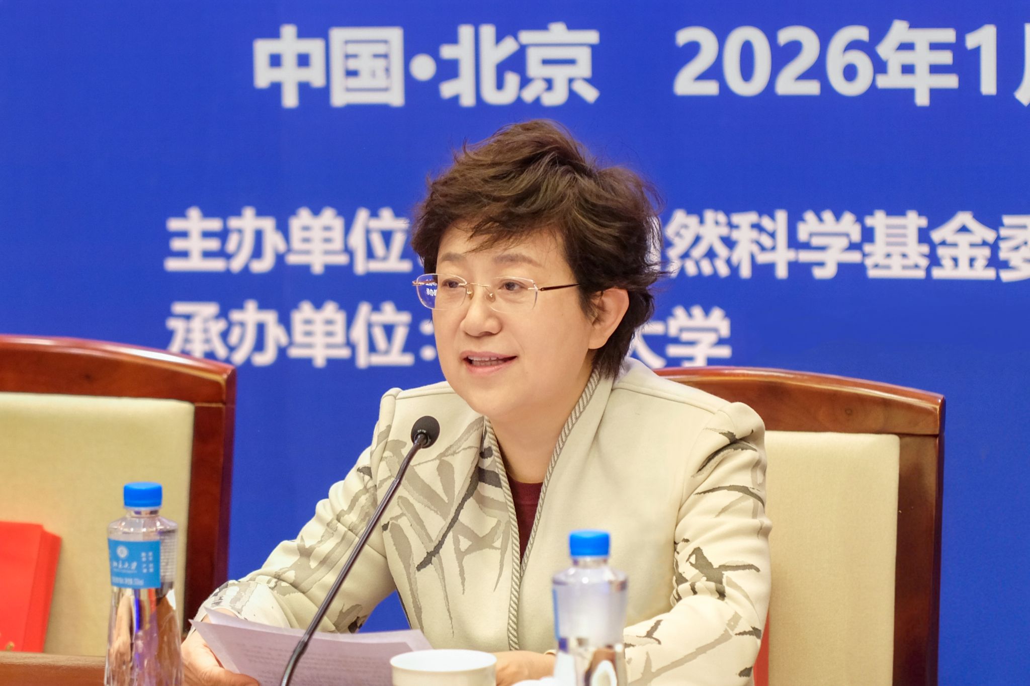 2026年1月5日上午,国家自然科学基金委专项项目“数智技术驱动的卫生经济与健康政策研究”2025年度交流检查会于北京大学顺利召开。此次会议由国家自然科学基金委管理科学部主办、北京大学承办。北京大学常务副校长、中国工程院院士乔杰,国家自然科学基金委管理科学部副主任吴刚出席会议并致辞。各课题负责人、学术指导专家、管理科学部三处工作人员等近50人参会。会议由基金委管理科学部三处陈中飞副处长主持。