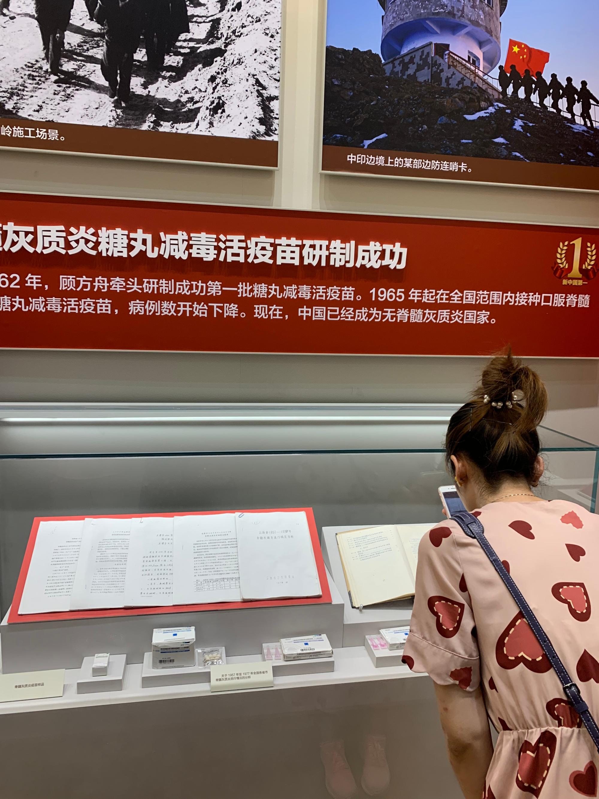 150个“新中国第一”中有很多与卫生和教育相关,这也是公卫老师们格外关注的展览内容。1952年卫生工作“四项原则”,为新中国卫生事业发展指明了方向;1955年8月沙眼衣原体首次由中国科学家成功分离,11月毛主席发出“一定要消灭血吸虫病”的号召;1956年开始开展除四害,传染病防疫工作;1960年2月农村合作医疗诞生,3月彻底消灭天花;1962年顾方舟牵头研制成功第一批糖丸减毒活疫苗;1963年1月成功实施师姐首例断手再植术,4月首次派出援外医疗队;1971年中国科学家第一次发现青蒿素;1974年世界卫生组织高度赞誉“赤脚医生”,评价其“远在世界其他国家认识到以人为本的初级卫生保健的重要性之前,中国的赤脚医生就已经在向社区提供这种保健服务”。