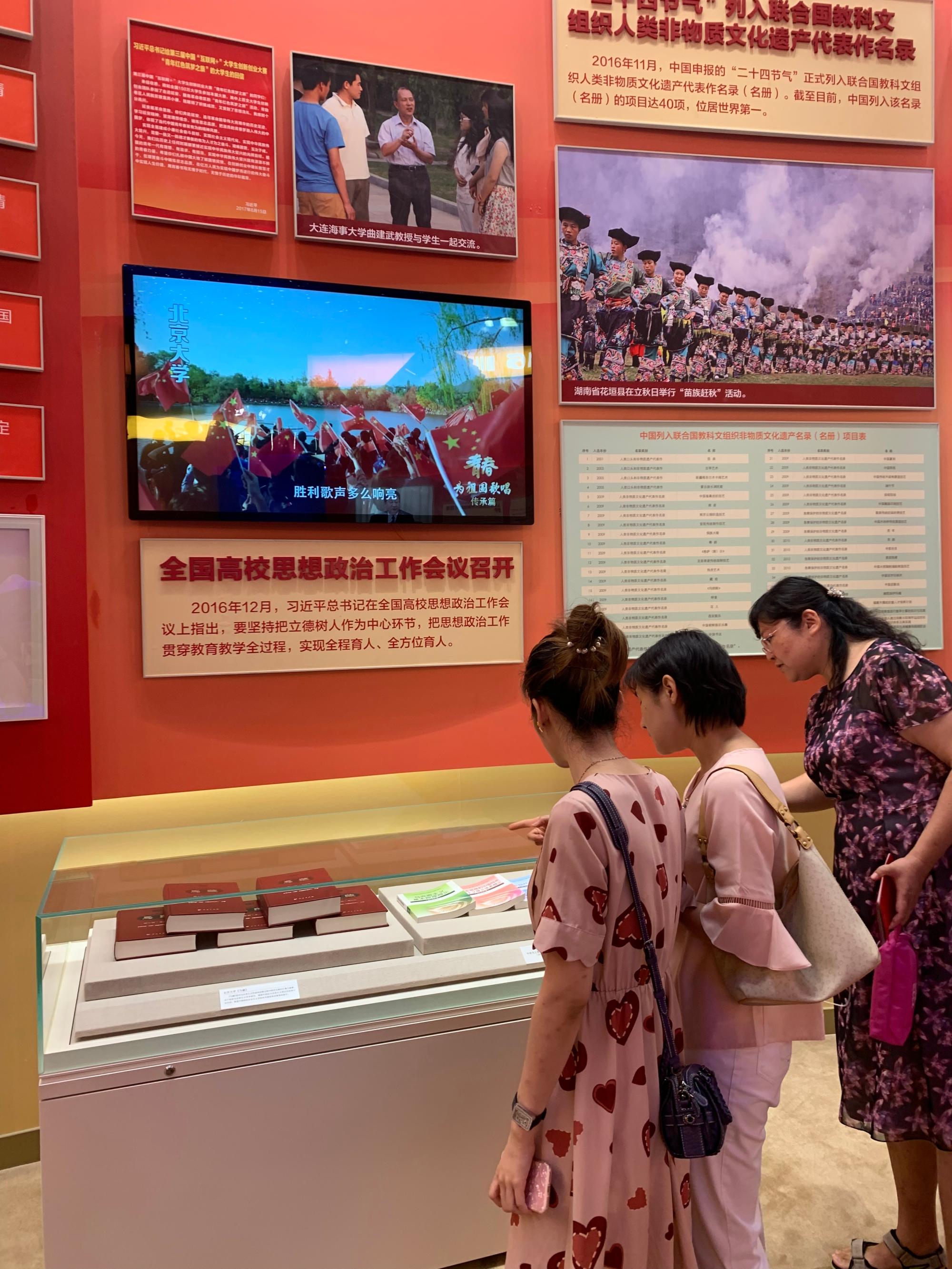 这次展览既突出“国事”“大事”,又强调老百姓身边的“家事”“小事”。老师们沿着展览的“时空隧道”一路前行,找寻着150个“新中国第一”。展品中,有神舟五号、蛟龙号、C919大飞机、神威·太湖之光这些“大国重器”,也有新华字典、粮票、的确良、缝纫机等与老百姓生活息息相关的用品,还有中国第一台拖拉机、第一台黑白电视机、世界最大单口径射电望远镜等等。除了图片展板、实物呈现、沙盘模型、视频资料,展览还对建造红旗渠、大庆油田、决战脱贫攻坚、棚户区改造等进行场景重现,还能看到上世纪50年代的婚房、小岗村18户农民在“包干”契约上按下的鲜红手印、改革开放初期农村和城市的家庭陈列、中国“太空漫步”第一人翟志刚穿过的“飞天”舱外航天服等等。