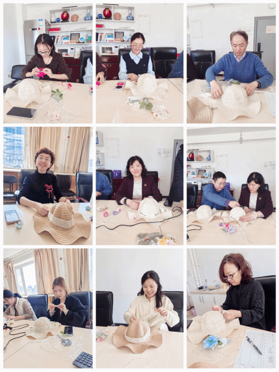 一群手工达人,一片欢声笑语,现场气氛温馨热烈。经过教师们的精心制作,一顶顶独一无二的“帽”美如花花草帽在教师们的巧手中诞生,或清新淡雅,或热情奔放,展现出大家对美的独特理解和对生活的无限热爱。