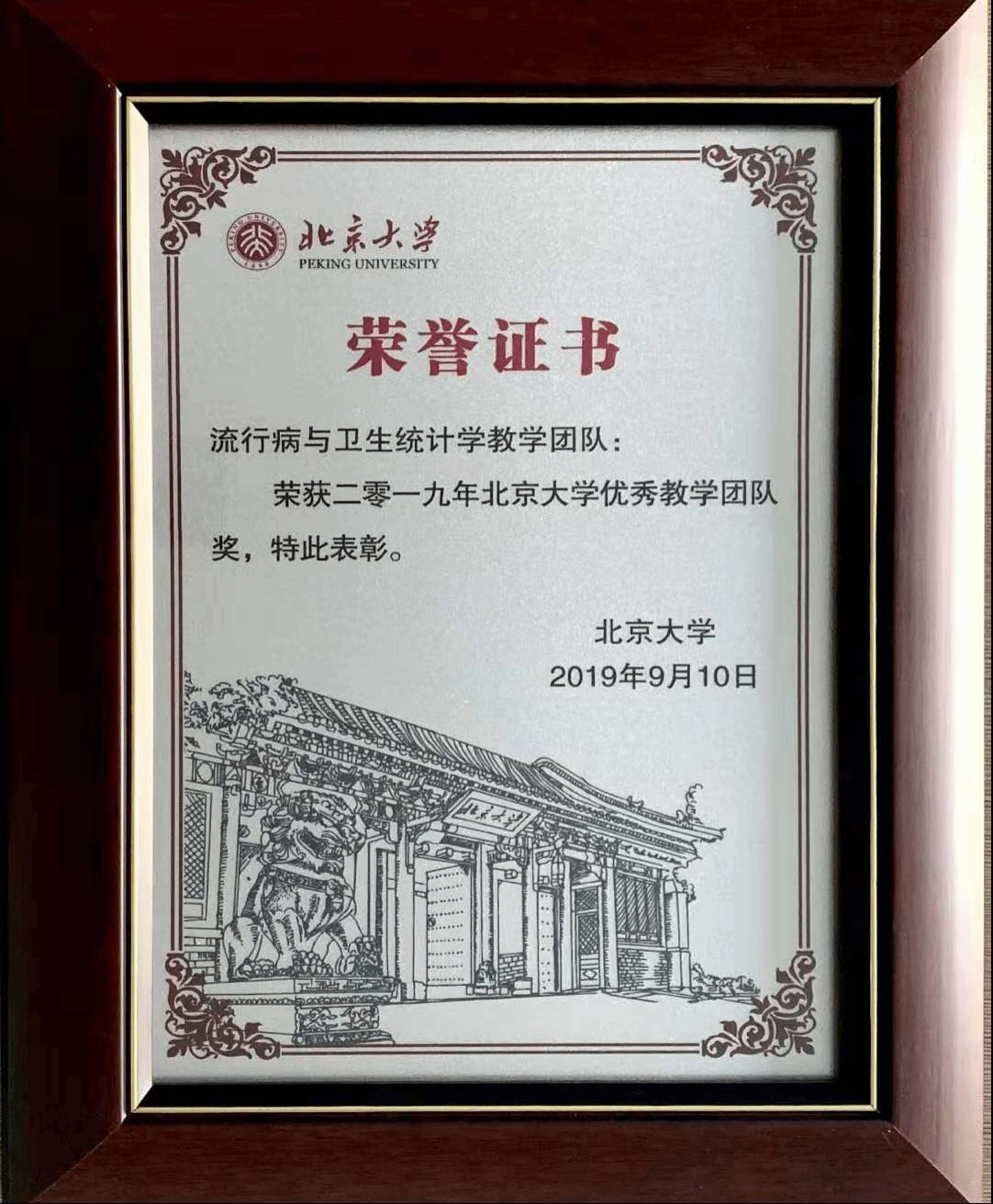 流行病与卫生统计学系教学团队于2018年获得“北京大学医学部师德先进集体“的荣誉称号。我系将继续秉承立德树人、德育为先的理念,继承和发扬我系优良传统。
