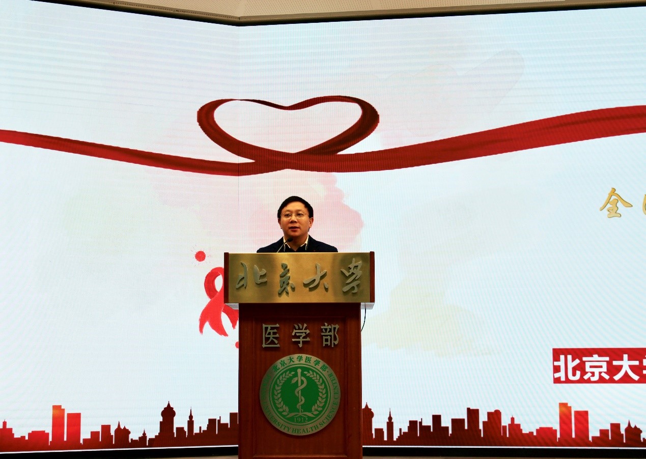 在与会领导、嘉宾和全体师生的参与下,北京大学公共卫生学院第十七届预防艾滋病宣传周正式启动。
