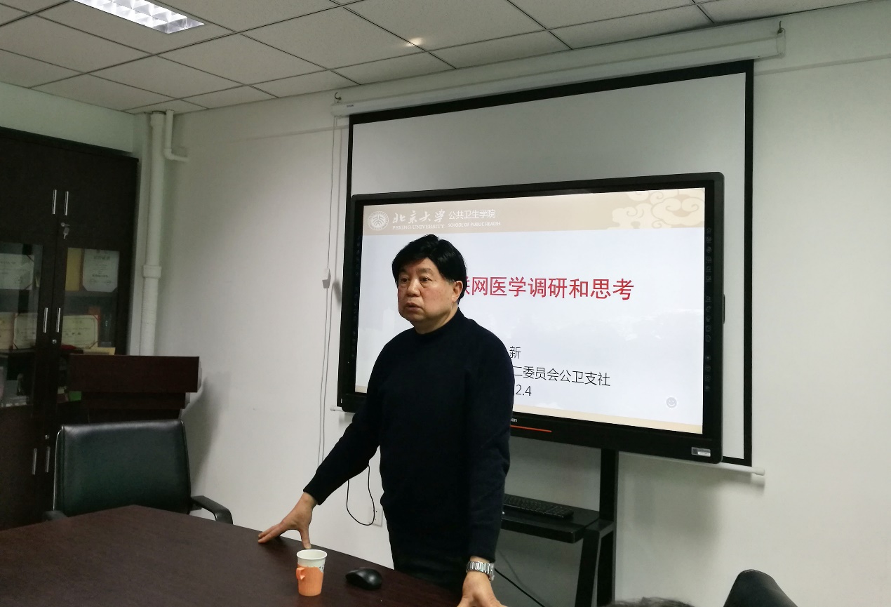 2019年12月4日,九三学社北京大学第二委员会公卫支社在北京大学公共卫生学院418会议室举办午间讲堂活动,主讲嘉宾为九三学社社员陈新老师,题目是《浙江互联网医学调研和思考》。