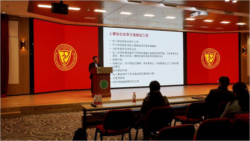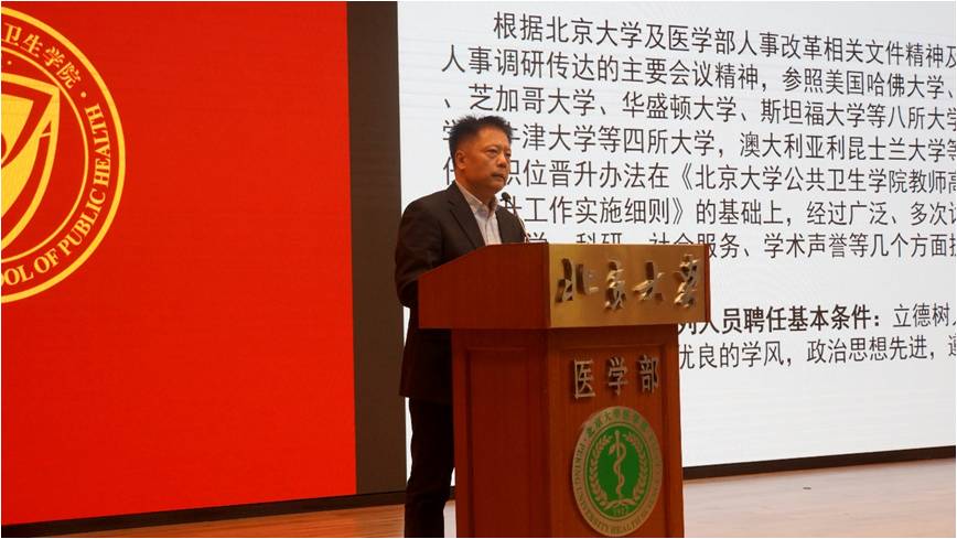 2019年10月28日下午,北京大学公共卫生学院人事综合改革说明会在逸夫楼209报告厅召开。公共卫生学院党政领导班子出席会议,全院教职工140余人参加会议。会议由党委郝卫东书记主持。