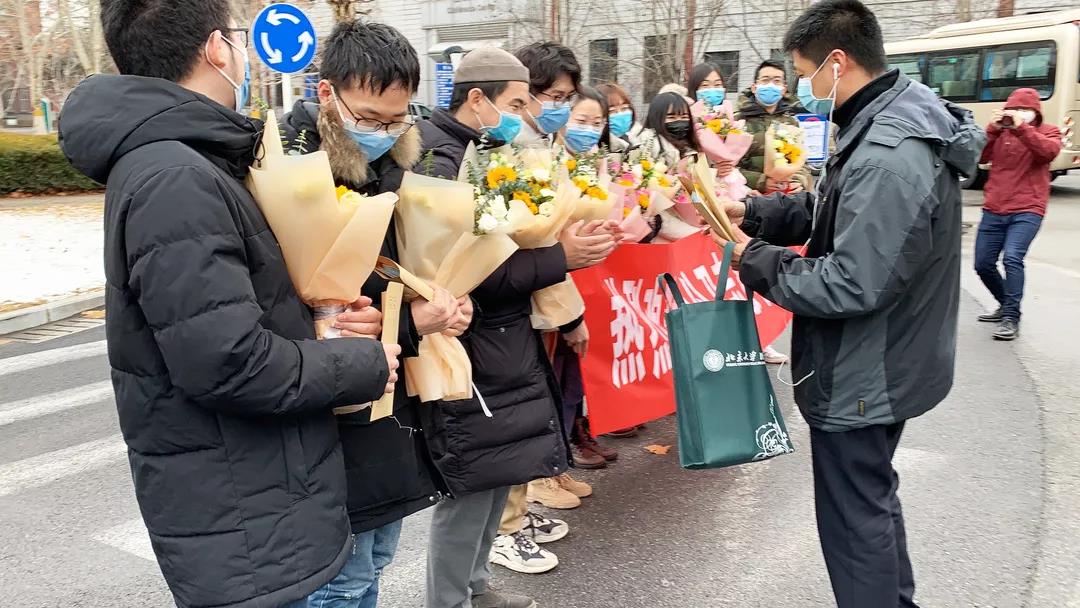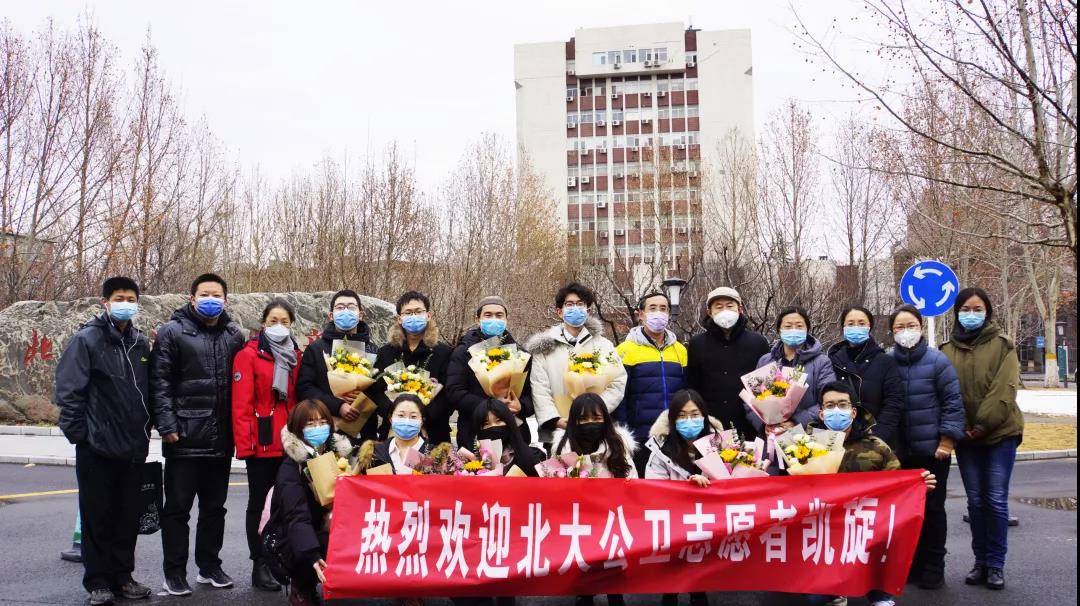 师生迎接第一批北大公卫志愿者团队返回休整