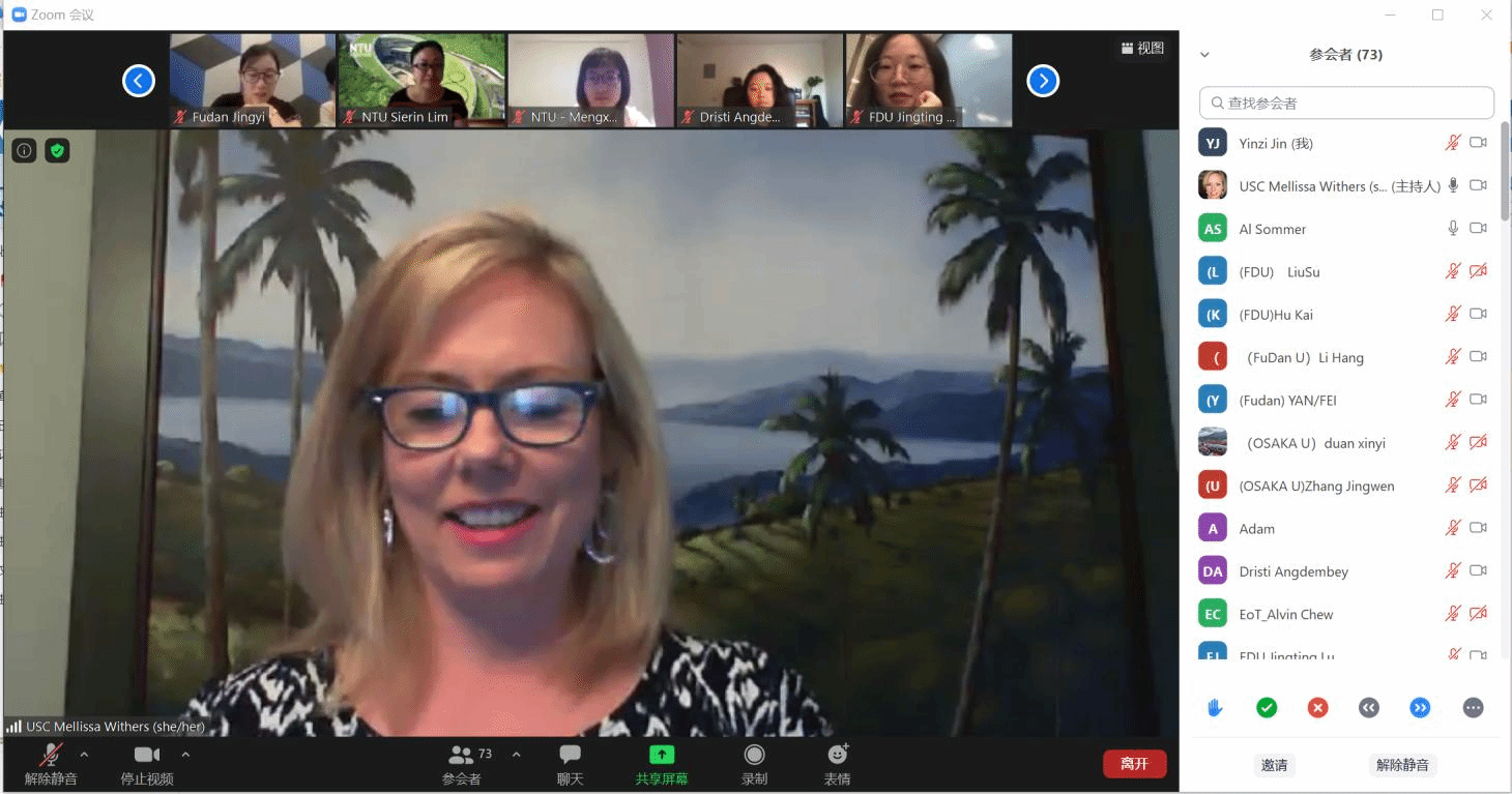 除核心组正在推进的合作之外,北大公卫学院全球卫生学系与APRU全球卫生项目也开展了相关合作项目。由美国南加州大学医学院(University of Southern California, Keck School of Medicine)全球卫生研究中心牵头的“APRU全球卫生领导力课程”于9月底开始,该课程面向来自美国南加州大学、墨西哥蒙特雷大学(Tecnológico de Monterrey)、日本大阪大学(Osaka University)、日本东北大学(Tohoku University)、新加坡南洋理工大学(Nanyang Technological University)、北京大学和复旦大学等七所高校的研究生,通过Zoom平台每周定期举办系列专家讲座,旨在通过跨文化、多学科的专业交流,培养学生在全球卫生治理与外交领域的领导力。期间,北大公共卫生学院全球卫生学系的郑志杰教授、尹慧老师和金音子老师作为辅导员,为七所高校的学生提供全方位学习指导。目前已有近百名研究生报名注册听课,课后实时共享丰富的网上课程资源,课程在顺利进展中。