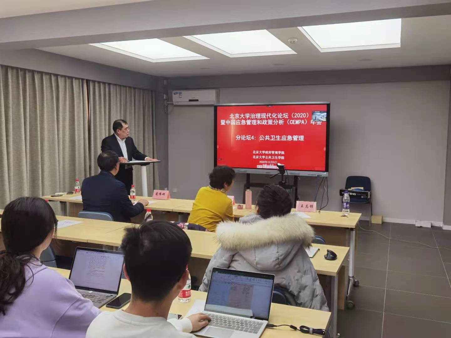 2020年12月5日下午,北京大学治理现代化论坛(2020)暨中国应急管理和政策分析(CEMPA)年会公共卫生应急管理分论坛在北京大学医学部顺利召开。为响应国家疫情防控工作相关安排,本次论坛采用线下为辅和线上直播相结合的方式召开。论坛邀请到北京大学公共卫生学院简伟研研究员、刘民教授、郭静副研究员和崔富强研究员进行报告。公共卫生学院王志锋副院长主持了本次论坛。各高等医学院校、科研单位的老师学生和地方政府党政机关、企事业单位,医院的管理人员共90余人参加了本次论坛。