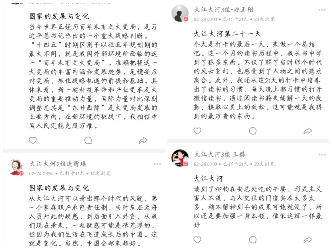 为迎接中国共产党百年华诞,学院特推出“读四史,忆初心”读书打卡活动,志同道合的小伙伴们相聚云端,组成读书小队,齐读四史,共忆初心,畅谈心中的感悟。