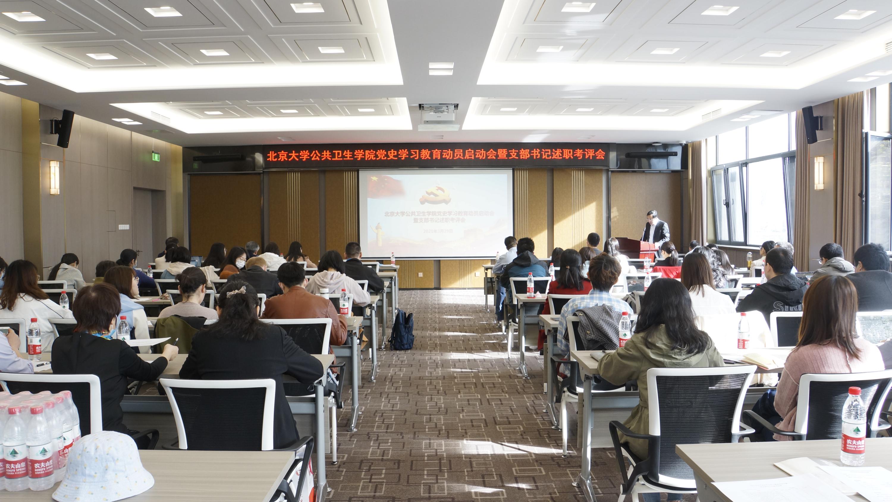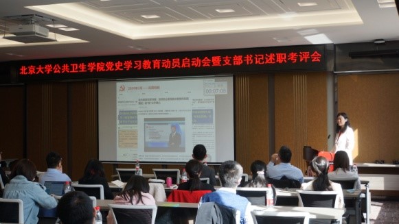 为深入学习贯彻习近平总书记在中央党史学习教育动员大会上的重要讲话精神,以及北京大学和医学部党委关于党史学习教育相关会议和文件精神,公共卫生学院党委于2021年3月29日上午在医学部会议中心206会议室召开北京大学公共卫生学院党史学习教育动员启动会,对党史学习教育以及庆祝中国共产党成立百周年相关工作进行动员部署,引导广大师生学党史、悟思想、办实事、开新局,在新时代新征程中奋勇向前;同时召开支部书记述职考评会,对过去两年的支部工作进行总结交流,对新的一年落实好党史学习教育各项任务进行规划部署。学院党委郝卫东书记、张景怡副书记、王志锋副院长、任涛副院长、郭新彪教授等党委委员以及教工和学生党支部全体委员等近60人参会。