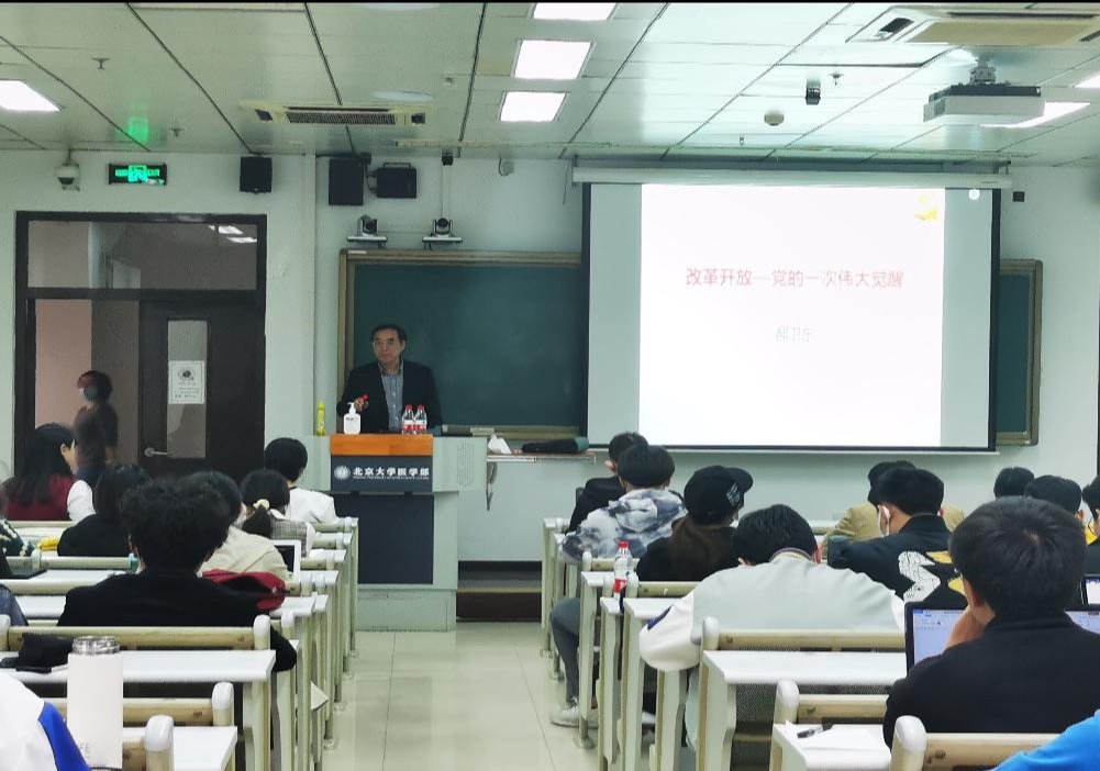 2021年4月15日星期四晚,北京大学公共学院党委书记郝卫东教授在逸夫楼509为学院第六期入党积极分子培训班的同学们讲授了题为“改革开放——党的一次伟大觉醒”的精彩党课。本次活动由北京大学公共卫生学院党委副书记张景怡老师主持。