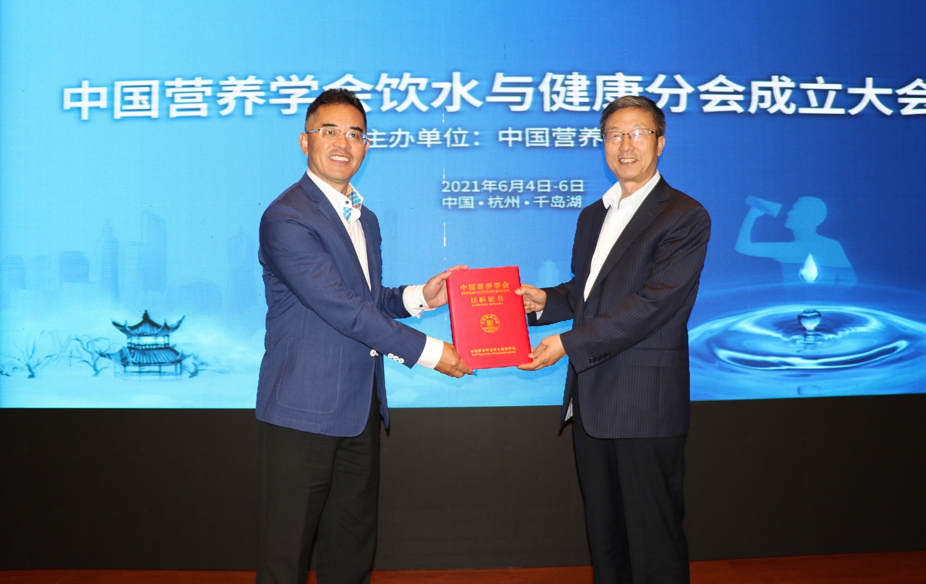2021年6月5日,中国营养学会饮水与健康分会成立大会在浙江省杭州市召开。来自北京大学、国家食品安全风险评估中心、中国疾病预防控制中心、海南医学院等单位的60余名代表出席了成立大会。