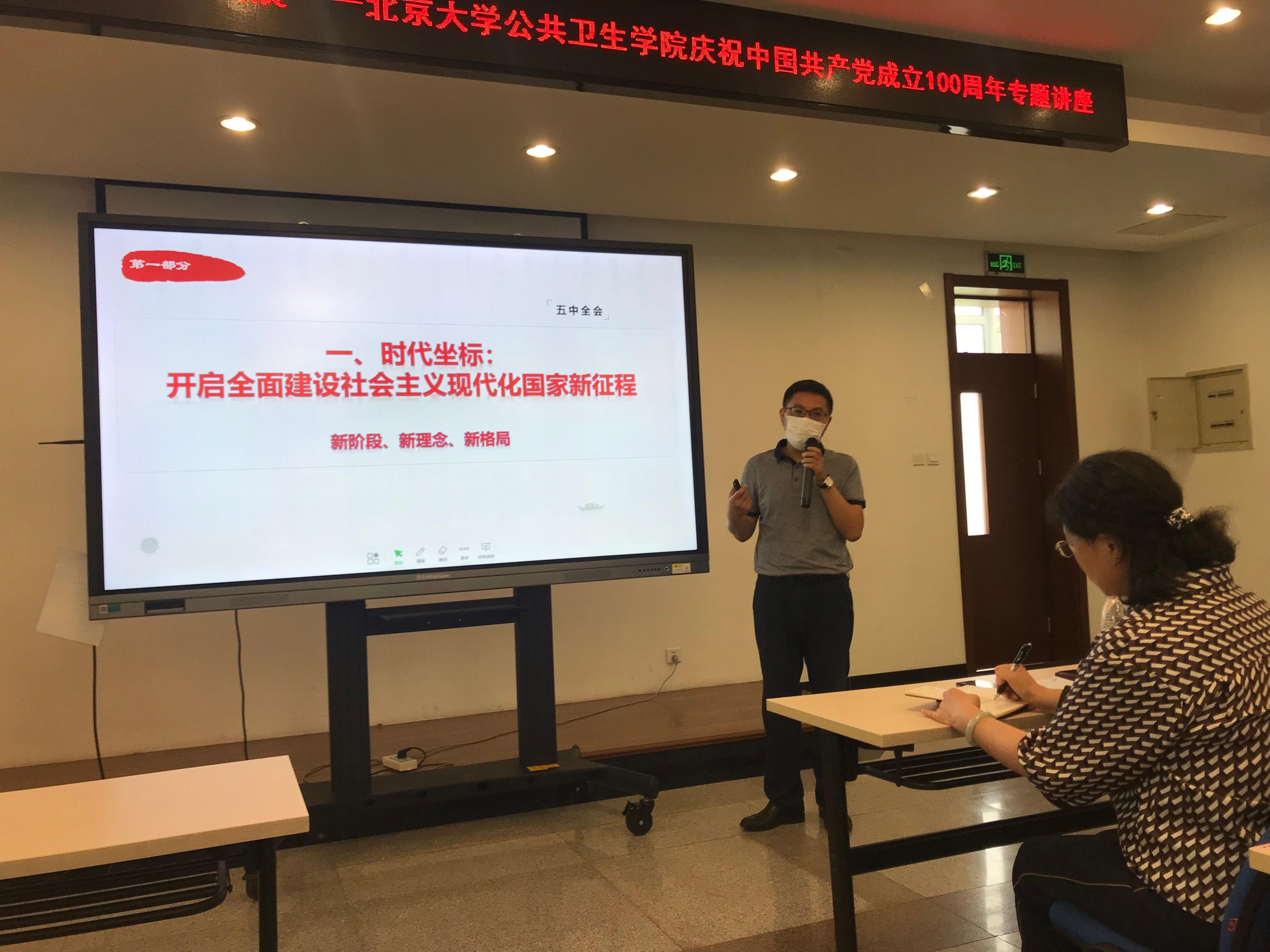 2021年6月15日,公共卫生学院党委党史学习教育专题系列活动之首都高质量发展历史与进程讲座在树华楼卫三教举行,学院党委委员、各教工及学生党支部党员约50人参加。讲座由党委副书记詹思延教授主持。