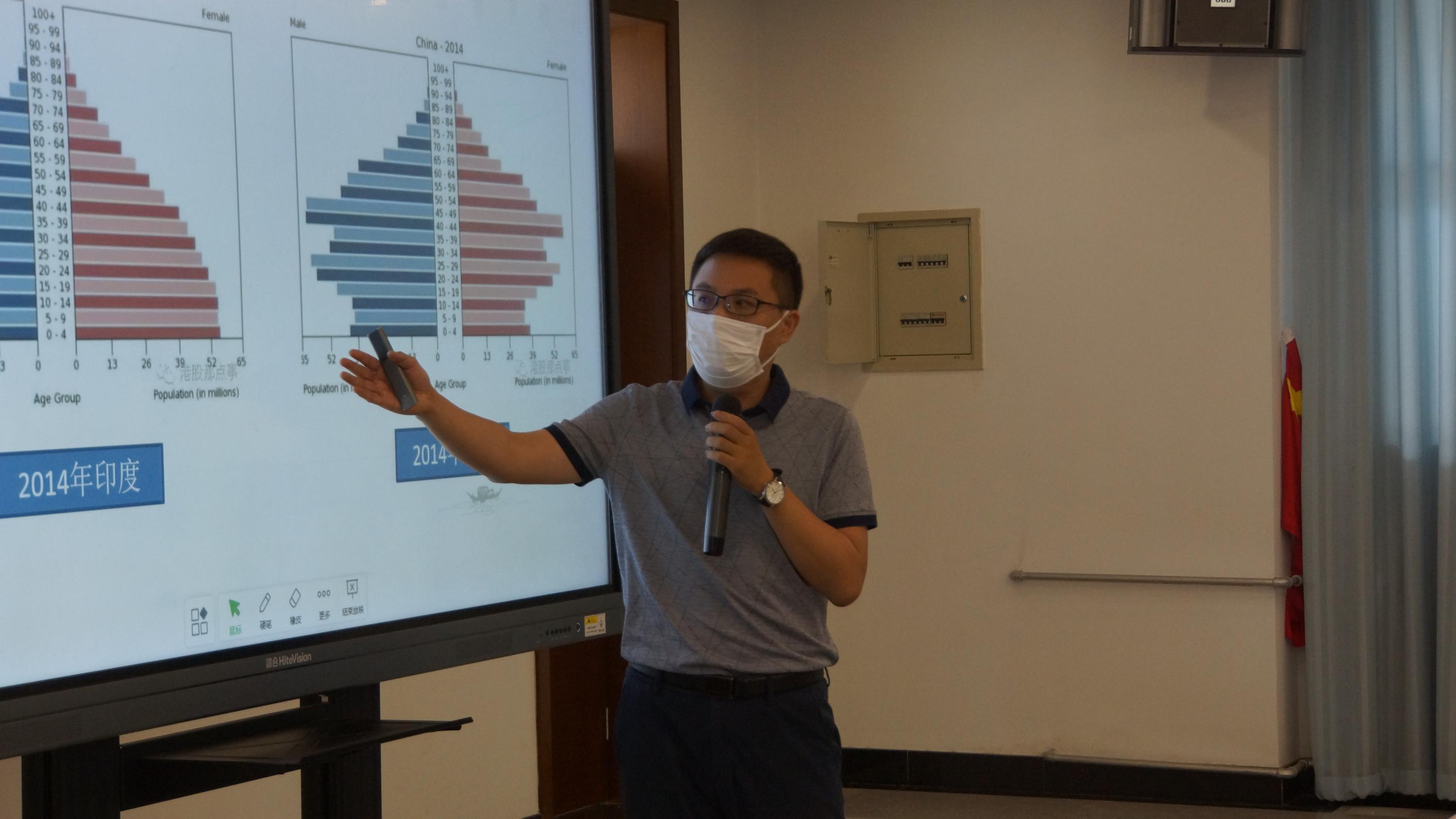 首先,尹教授以对习近平总书记“世界百年未有之大变局”讲话精神的思考感悟为开端,从国际形势、人口结构、产业结构等方面系统地回顾分析了北京在国际、国内发展环境中面临的挑战与机遇,向学院师生党员干部们全面阐释了为什么说目前我们面对的环境是复杂严峻的,为什么说需求牵引供给,而供给又创造需求等问题。