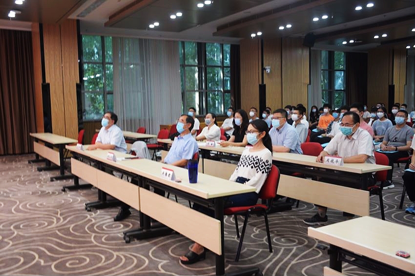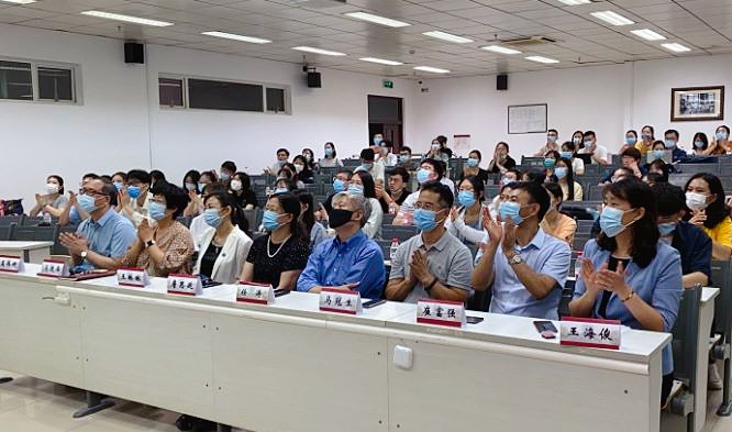 本次开学典礼受会场疫情防控人数限制,但为增强学生的参与感与师生互动,典礼采取两个会场不分主次双向直播的形式,本科新生和研究生新生与院领导和各系主任老师们分别在209会场和414会场就座。还有很多研究生新同学和16级长学制同学,以及新生家长一起在线观看直播。特别是因为疫情滞留在家乡的1位本科生新同学和6位研究生新同学,也在云端与大家一起团聚,共同庆祝了开学。