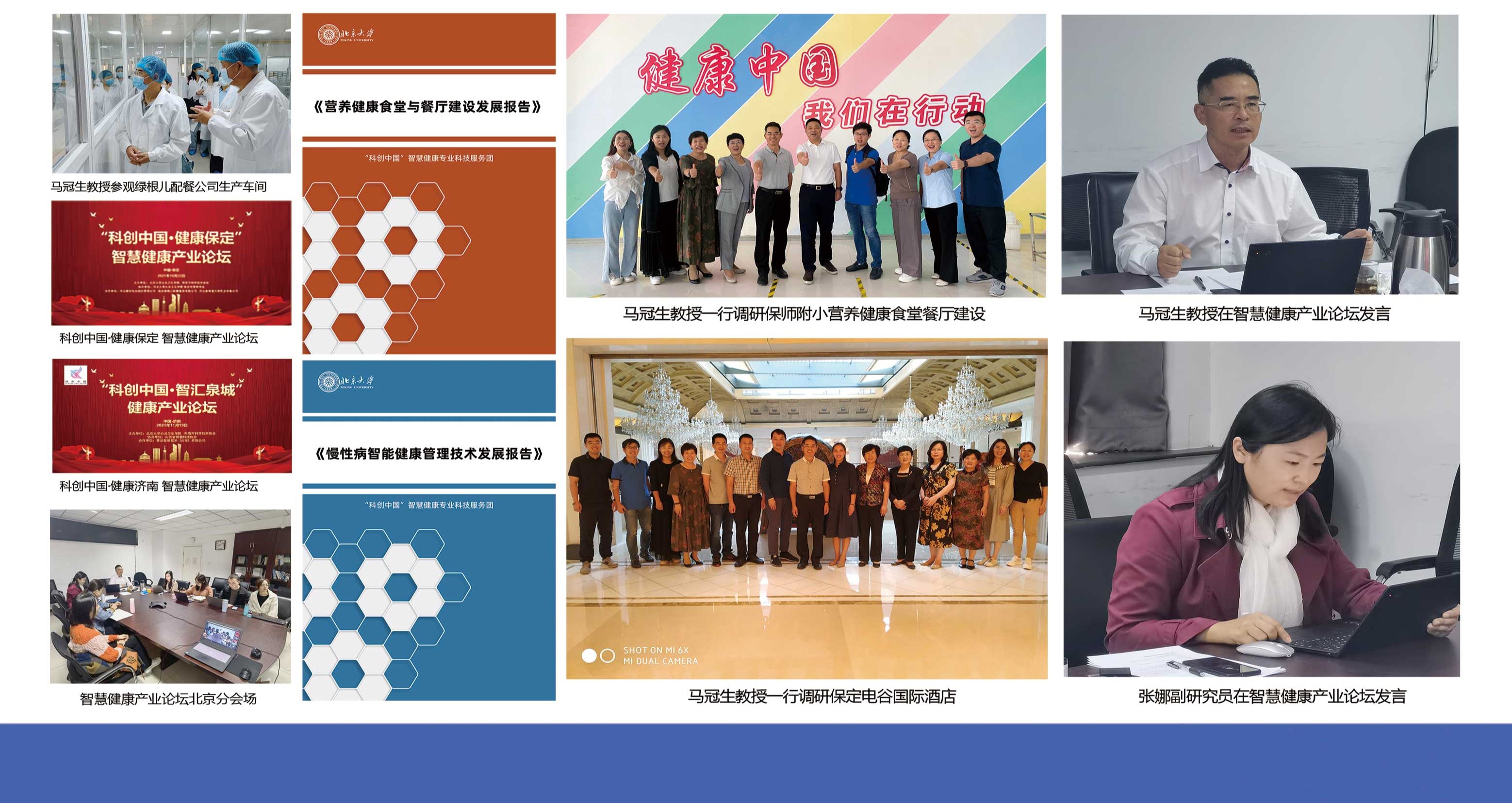 马冠生教授团队在紧守防疫要求的同时,克服时间紧、任务重等多项困难,圆满地完成项目任务,包括与保定市科协、济南市科协以及多家企业单位签订合作协议,形成联合工作团队;组建来自北京等6城市62名智慧健康领域的专家“人才库”;在河北保定和山东济南建立4家专家工作站,建立长效服务机制;赴保定市、济南市进行企业需求调研,挖掘51项高质量产业服务需求;围绕健康餐厅建设策略与模式的建立、慢性病管理适宜技术等内容,完成《营养健康食堂与餐厅发展报告》和《慢性病智能健康管理发展报告》;成功举办线上 “科创中国·健康保定”智慧健康创业论坛和“科创中国·智汇泉城”健康产业论坛;建立科普资源库,发布科普文章46篇,录制科普视频55个,以提高营养健康服务人员科学和科普水平,提升普通大众的营养健康素养。