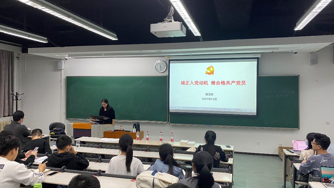 随后,郝老师与同学们交流了如何做一名合格的共产党员。从《中国共产党章程》规定的党员的标准谈起,具体介绍了如何早日达到合格党员的标准,并启发同学们要坚持自己的思考。