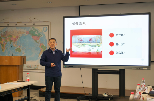 徐书记首先从“为什么要强调课程思政”出发,以革命和教育的首要问题为引,强调了教师的初心和根本任务应当落实立德树人,肩负起为党育人、为国育才的历史使命,让在座的老师们切实领会到思政教育的重要性。徐书记进一步阐述了对于思政建设的独到见解,课程上的思政教育应当拥有思想的魅力、理论的支撑和灵魂的升华。“你给予学生的教育方式,就是你对于生命的理解体现。”徐书记谈到思政教育与专业课程的“融合”,不是贴标签式的生搬硬套,是建立在教师自身政治修养基础上的言传身教与先进思想交流的融会贯通、心与心的沟通。
