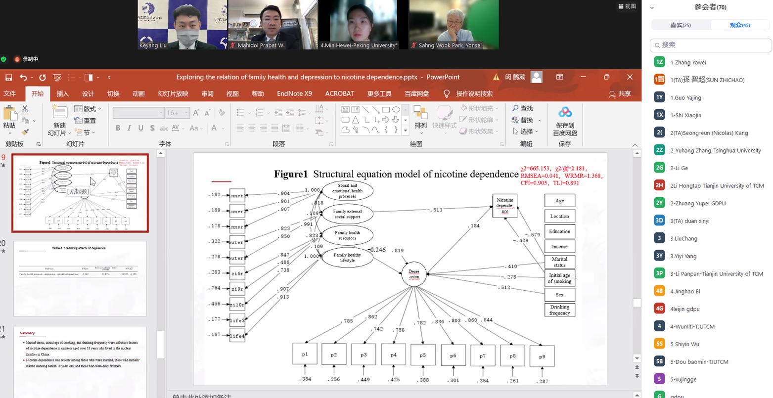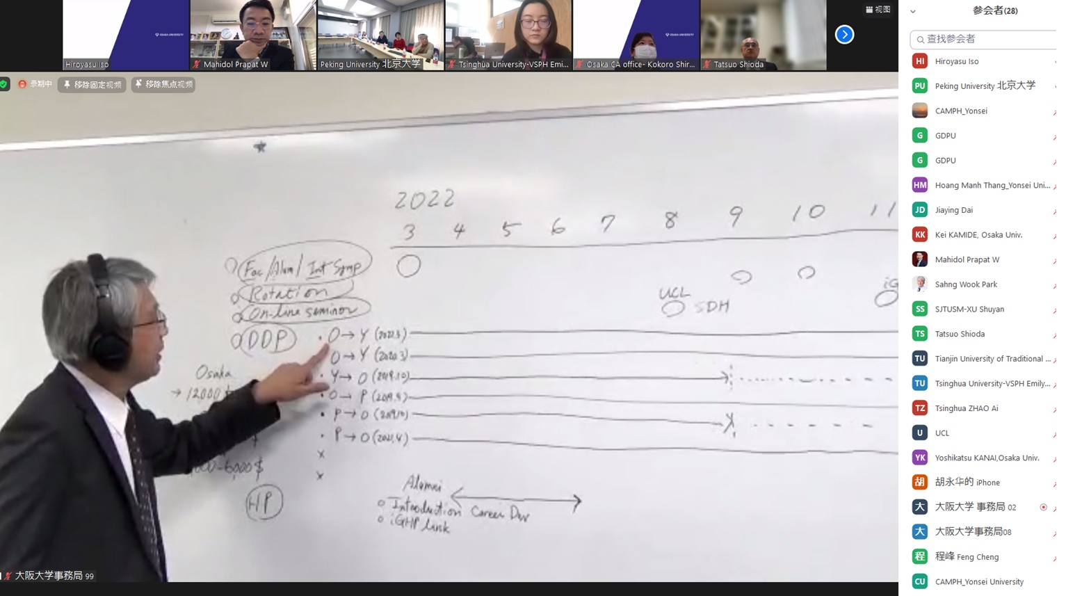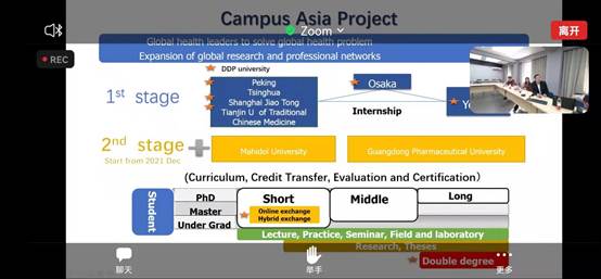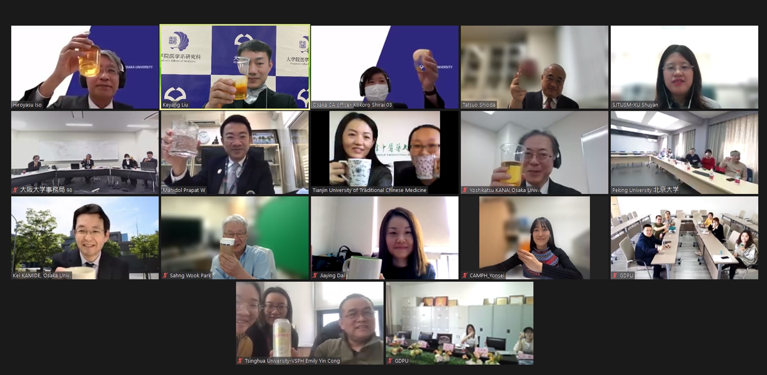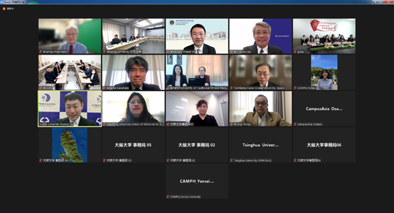 2022年3月2日至3月4日,亚洲校园计划(亚洲高等教育共同体)医学与公共卫生领袖人才培养项目年会在线上会议室召开。中方(北京大学、清华大学、上海交通大学、天津中医药大学、广东药科大学)、日方(大阪大学)、韩方(延世大学)、泰方(玛希隆大学)项目高校合计五十余人出席会议。医学部国际合作处徐白羽教授,学院王培玉教授、任涛副院长、史宇晖副教授、高文静副教授、黄婧副研究员、党院办主任刘杰老师以及相关系所和学科18名研究生参会。