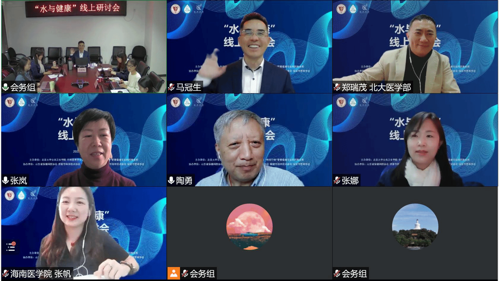 时值第三十届“世界水日”与第三十五届“中国水周”,为推动水与健康研究的发展,促进产学研融合,普及饮水与健康的相关知识,提升大众对水与健康的关注,2022年3月22日上午,由北京大学公共卫生学院、中国营养学会饮水与健康分会、“科创中国”智慧健康专业科技服务团主办,山东省保健科技协会、济南市科学技术学会、保定市科学技术协会、聊城市科学技术协会、保定市营养学会协办的“水与健康”研讨会在线成功举办。会议集聚来自水利工程、预防医学、基础和临床医学的多位专家学者,从水资源、饮水安全、饮水健康和科学饮水等方面,分享了水与健康领域的新近研究进展。本次研讨会吸引了约300人在线参会,取得了良好的社会反响。