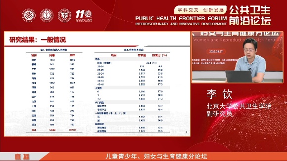2022年正值北大医学办学110周年,北京大学公共卫生学院联合北京大学医学部科研处于8月26~27日共同举办了《“学科交叉,创新发展”公共卫生前沿论坛 》,旨在加强学术交流、促进公共卫生发展。作为公共卫生前沿论坛的重要部分,“儿童青少年、妇女与生育健康分论坛”于2022年8月27日(周六)8:30-17:30以线上和线下相结合的方式召开。本次分论坛的主题是“新时期儿童青少年、妇女与生育健康热点问题”,目的是邀请国内外相关领域专家学者围绕新时期国内外儿童青少年、妇女与生育健康领域面临的热点和前言问题进行广泛交流,促进北京大学儿少、妇幼与生育健康学科群建设,也为兄弟院校相关专业学科群的发展提供借鉴。分论坛分上、下午两个模块,上午是国内外资深专家专场,下午是青年学者专场。共邀请了18位国内外相关领域嘉宾进行了演讲,邀请了6位资深专家进点评。