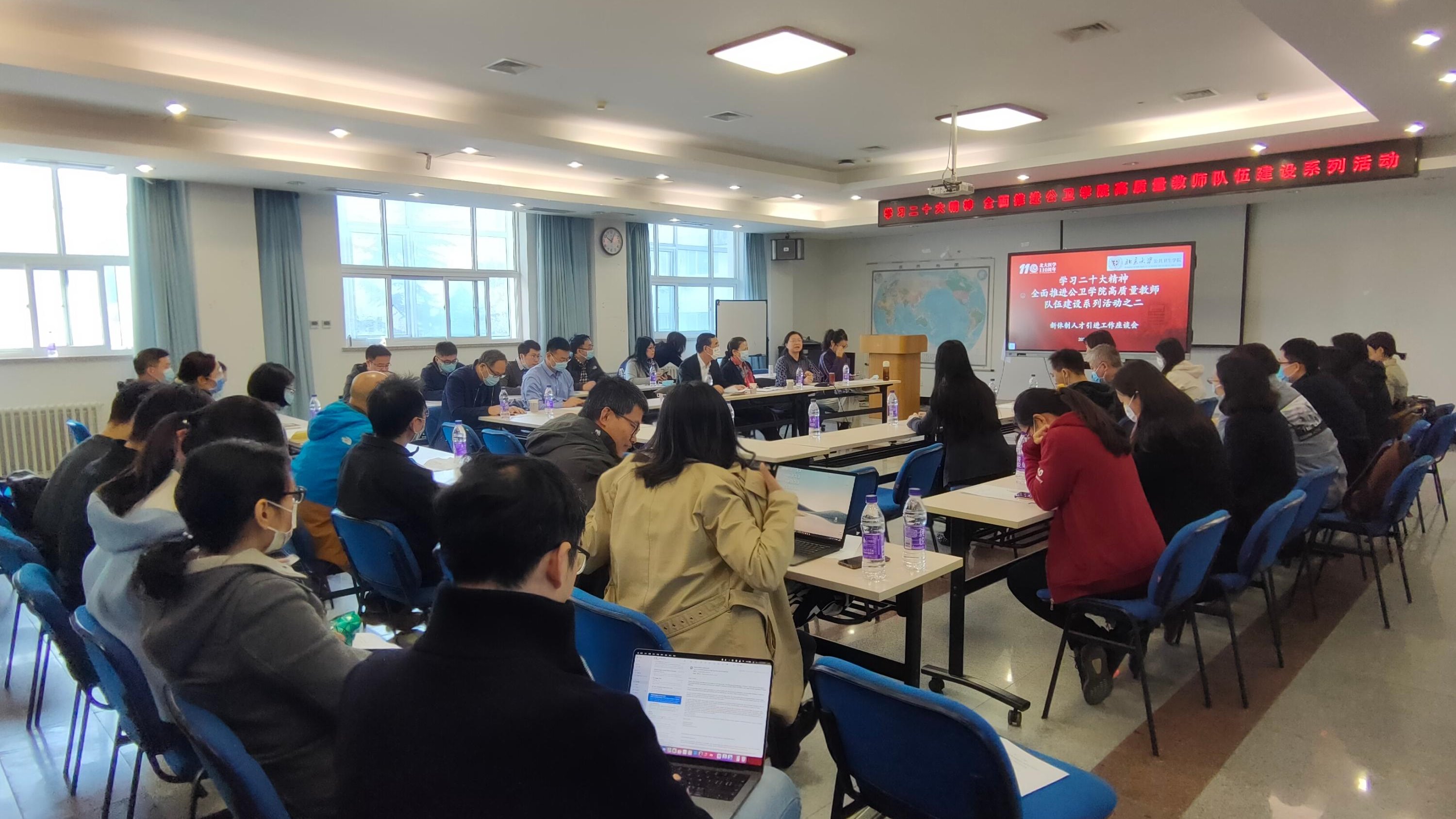 党委书记郝卫东教授带领与会老师学习党的二十大精神,重点围绕二十大报告实施科教兴国战略,强化现代化建设人才支撑的内容,从办好人民满意的教育,完善科技创新体系,加快实施创新驱动发展战略,深入实施人才强国战略等方面进行了领学,并结合人才队伍建设主题,着重从重视教育教学、加强科研创新等方面进行了详细解读。