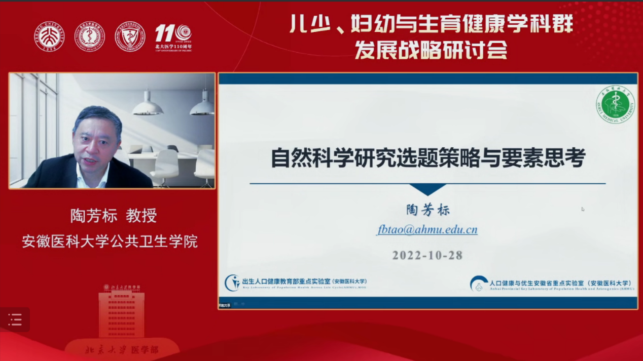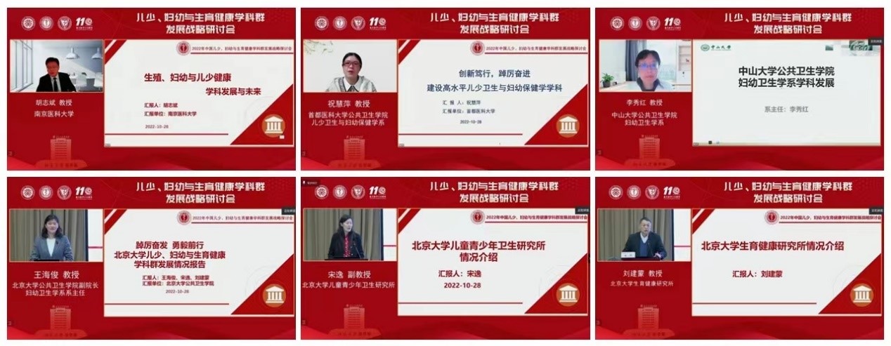 2022年正值北大医学办学110周年,为了贯彻落实《“健康中国2030”规划纲要》《中国妇女发展纲要(2021—2030年)》和《中国儿童发展纲要(2021—2030年)》等重要政策文件,进一步促进我国妇女与儿童健康相关学科发展,北京大学公共卫生学院于10月28日举办了《儿少、妇幼与生育健康学科群发展战略研讨会》。本次会议邀请了国家卫健委、教育部、疾控局等多个部委领导及各高校相关学科带头人,围绕中国妇女与儿童健康相关政策、热点问题和发展需求、儿少妇幼与生育健康相关学科情况及未来发展规划进行了交流。