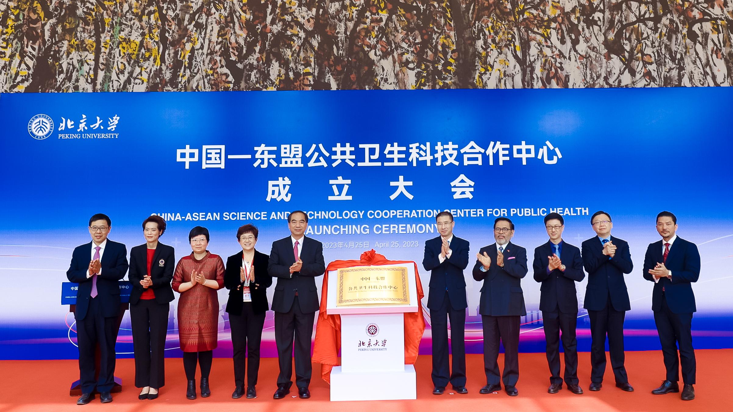 成立大会上,科技部副部长张广军、印度尼西亚驻华大使周浩黎、北京大学校长龚旗煌、北京大学常务副校长和医学部主任乔杰共同为中国—东盟公共卫生科技合作中心揭牌。科技部国际合作司司长戴钢、教育部国际合作与交流司副司长贾鹏、国家卫生健康委员会国际合作司原司长、世界卫生组织原助理总干事任明辉、泰王国驻华大使馆公使衔参赞陈善意、马来西亚驻华大使馆教育参赞沙烈胡丁、玛希隆大学副校长诺帕蕾一同见证中国—东盟公共卫生科技合作中心成立。