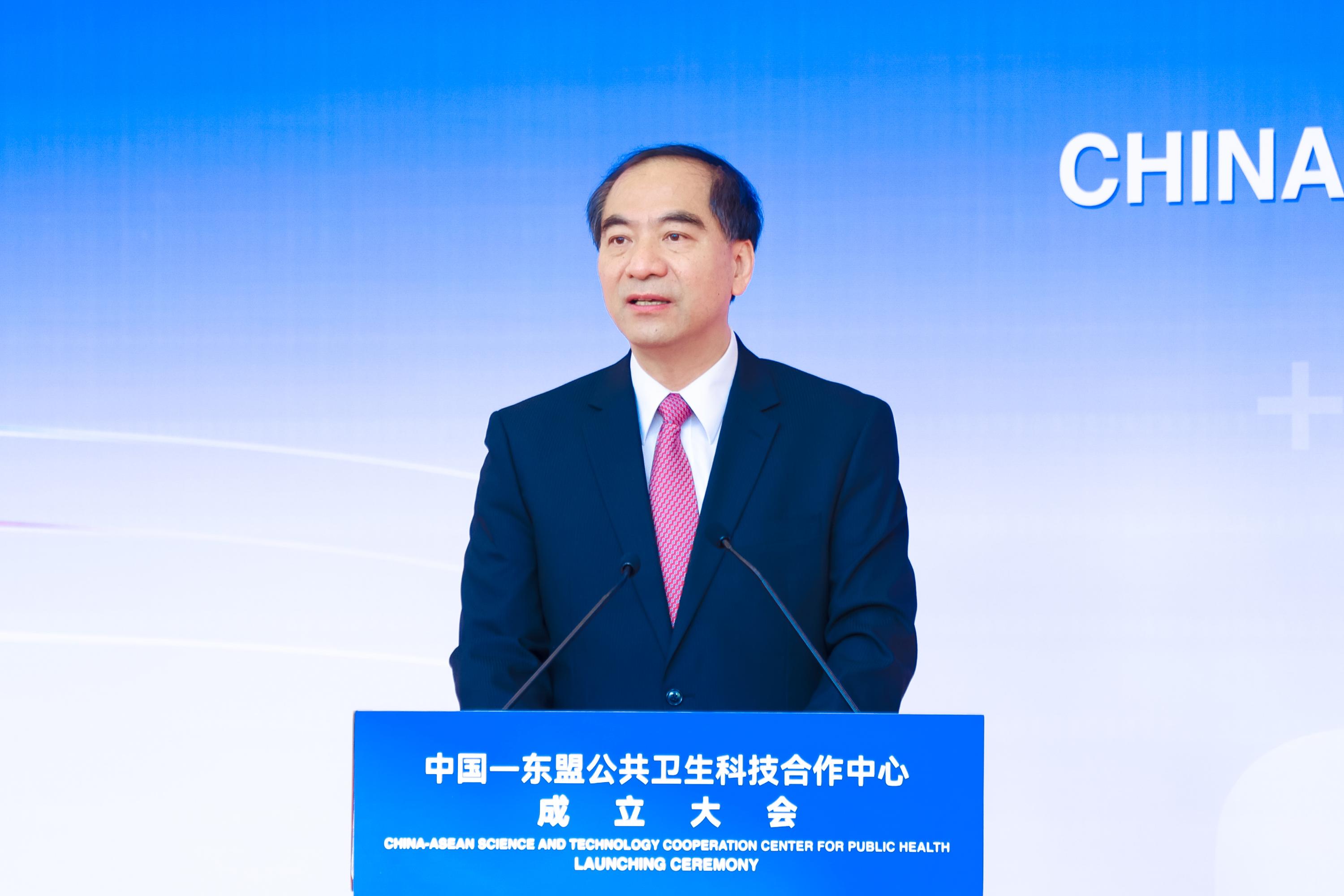 科技部副部长张广军向中国—东盟公共卫生科技合作中心的成立表示热烈祝贺。他指出,中国与东盟地缘相依、人文相通、命运与共,自建立对话关系30余年来,走出一条团结奋进、合作共赢之路,构建了日益紧密的命运共同体。他特别提到,中心建设是落实习近平主席在中国—东盟建立对话关系30周年纪念峰会、以及时任总理李克强在第24次和25次中国—东盟领导人会议上所提倡议的重要举措。中国科技部在2022年6月中国—东盟科技创新联委会第11次会议上提出,支持北京大学牵头、联合国内多家机构,共同建设面向东盟的公共卫生科技合作平台。他对中心发展提出殷切期望,希望中心加速形成覆盖东盟各国的合作网络,成为中国与东盟公共卫生领域人才互动的广阔舞台,为守护区域公共卫生安全发挥更大作用。