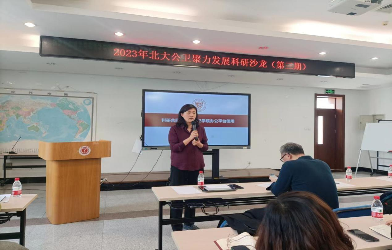 为使学院教师深入了解科研管理系统使用流程,规范科研合同用印申请平台填报,提高科研管理效率,10月23日,公共卫生学院科研办、工会联合举办的科研系统填报培训沙龙活动在卫三教进行,各系(所、中心)教学秘书及40余名骨干教师参加培训。学院副院长王海俊教授、院长助理简伟研教授出席培训会,培训会由科研办主任高苏堤副教授主持,科研办王洋老师做了《科研合同管理与公卫学院办公平台使用培训》的报告。
