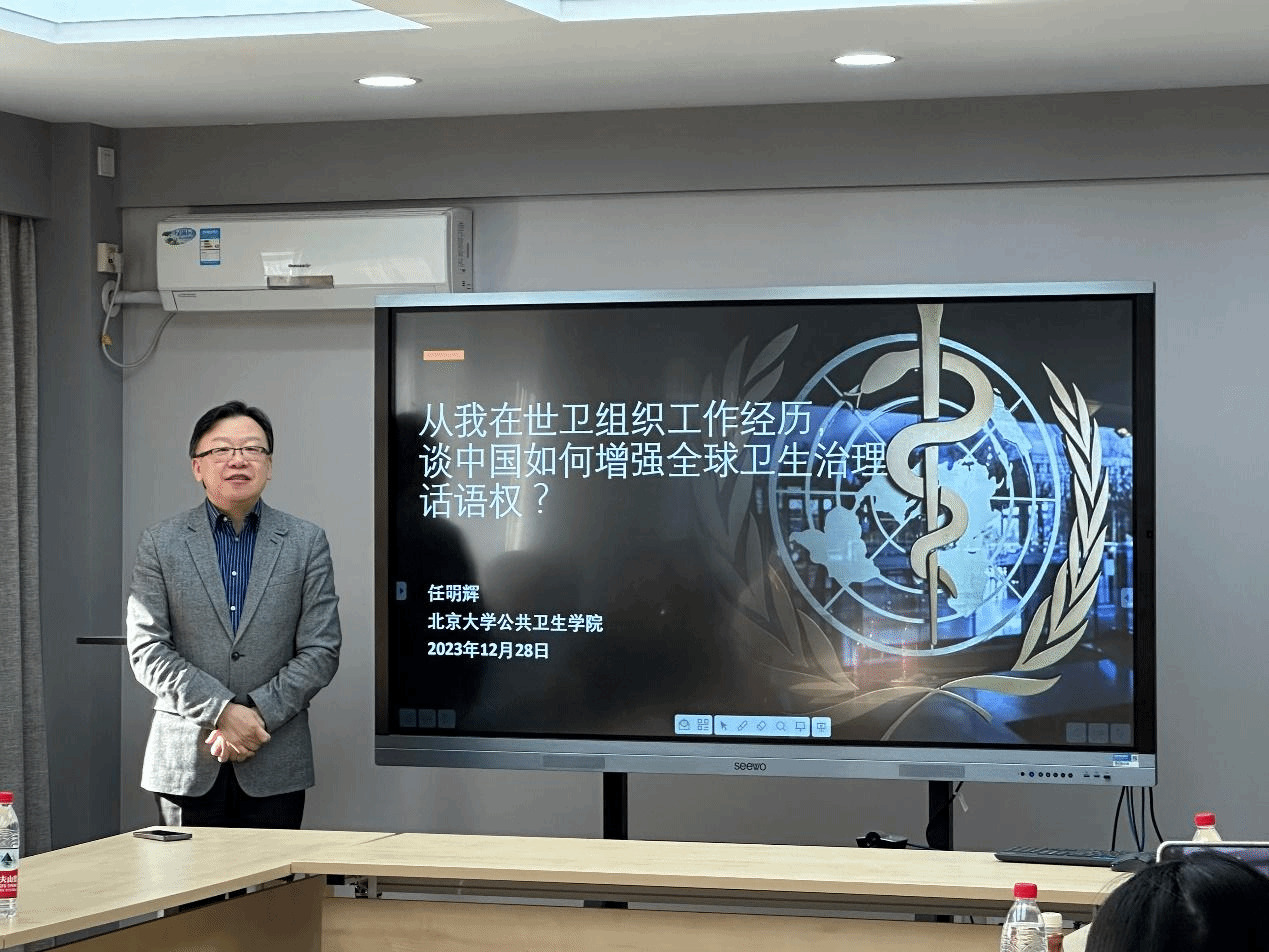 2023年12月27日中午,北京大学公共卫生学院卫生政策与管理学系教职工党支部“全球卫生治理经验交流活动”在护理楼325教室顺利举行。本次讲座邀请了北京大学公共卫生学院全球卫生学系任明辉老师,结合其在世卫组织的工作经历,分享关于中国如何增强全球卫生治理话语权的思考。党支部近30人参加讲座,并与任明辉老师进行了热烈的交流与讨论。