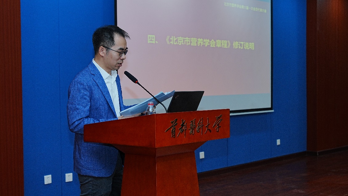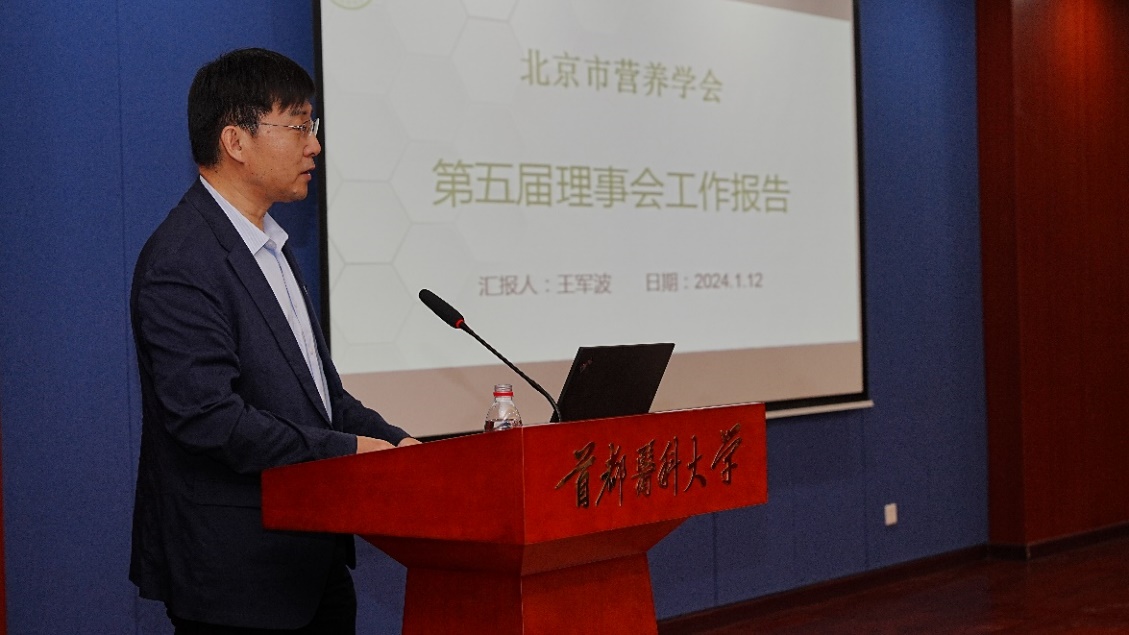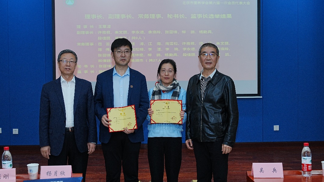 新当选的第六届理事会理事长王军波副教授表示,要继续秉持“传承与创新、服务与引领”的理念,与广大会员和理事团结一心,共同努力,以高度的责任感和使命感,全力以赴履行好学会的基本职能,发挥好学会的引领和服务作用,为推动首都居民营养素养和健康素质的提升贡献自己的力量。