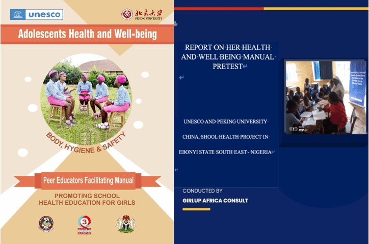 在尼日利亚,技术工作组将北京大学技术团队为非洲国家开发的女童健康教育手册《For Her Health 爱小丫》学生用书和教师用书进行本土化,并提供给尼日利亚埃博尼州的同伴教育者,目前该手册已纳入埃博尼州的国民教育体系。项目实施后,青少年女童性与生殖健康教育的可及性显著提升,学校预防和应对性别暴力的能力显著提升,青少年女童经期卫生与健康管理相关知识、态度、行为显著提升。