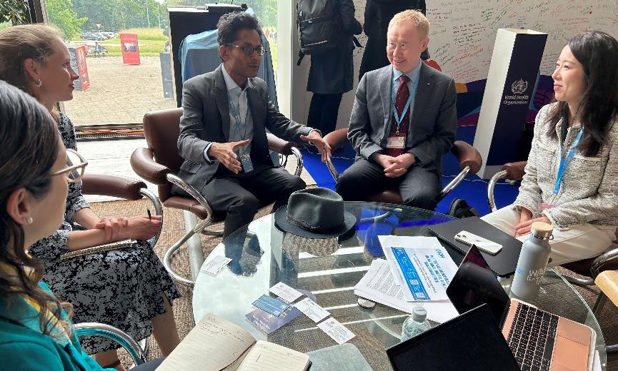会议期间,北大团队会见了世界卫生组织健康促进司司长Ruediger DRECH博士及其团队,介绍了北京大学在全球卫生治理和参与全球健康促进方面的最新发展。双方就健康传播、健康素养、烟草控制、健康城市、健康与福祉等领域的合作深入交流了意见。
